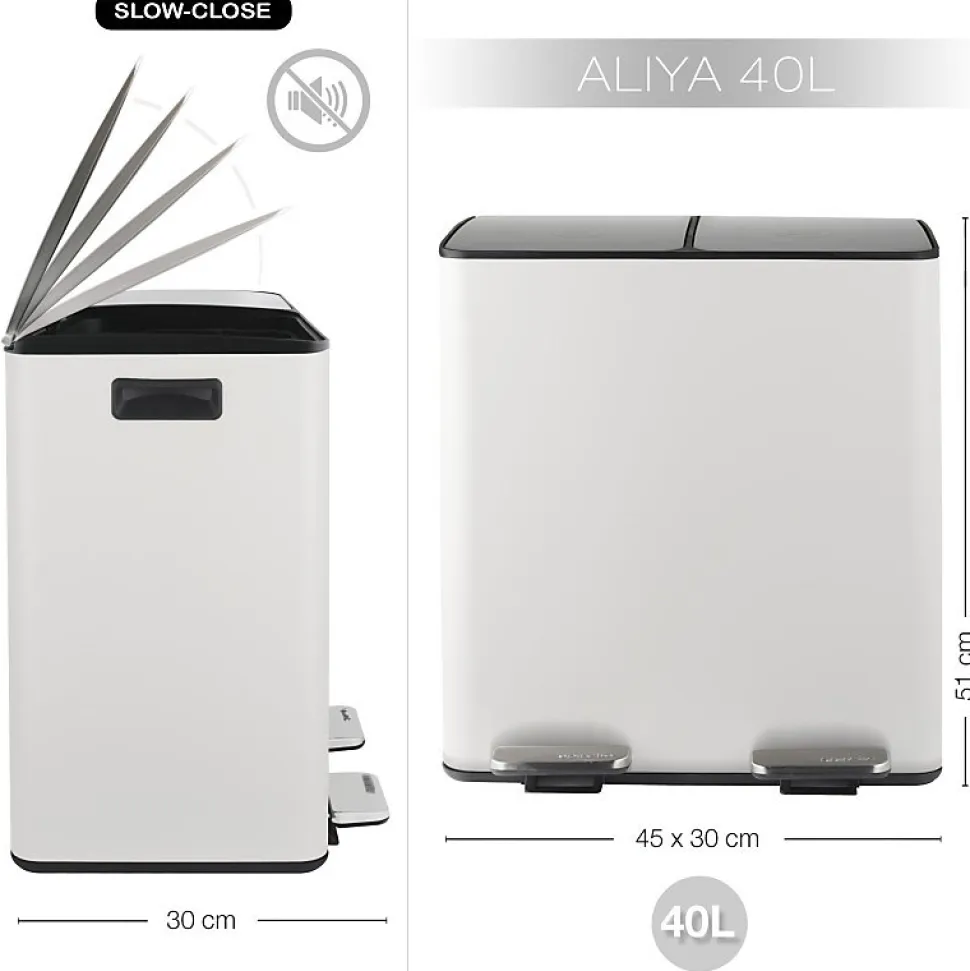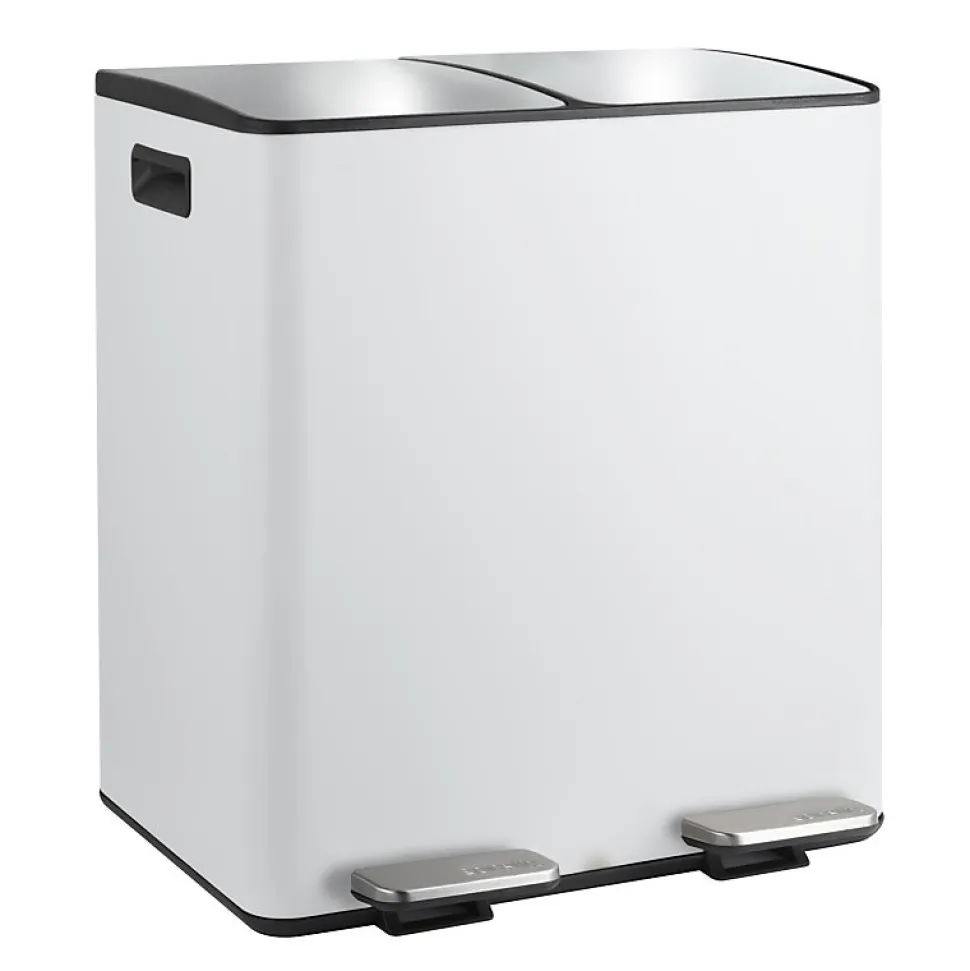 Poubelle de la marque SPIRELLATriez vos déchets avec élégance. Notre poubelle de cuisine tri sélectif combine à la fois design élégant ainsi que toutes les fonctionnalités pour une gestion facile des déchets à la maison. C’est la version avec deux conteneurs intérieurs: 20L chacun.Ce séparateur de déchets permet de trier facilement les déchets. Confortable à utiliser, cette poubelle tri-sélectif a tout pour plaire: 2 contenants de 20L parfaits pour la séparation des ordures rapide: papier, cartons, déchets alimentaires etc… Convient pour une utilisation en intérieur: poubelle de cuisine ou en extérieur : caves, Jardin, etc. C’est également un bon moyen d’apprendre les bases du recyclage à vos enfants.POUBELLE ERGONOMIQUE, TOUT EN DOUCEUR: Son couvercle ingénieux slow-close permet au couvercle de se fermer de manière douce et retient les mauvaises odeurs à l’intérieur. Les deux poignets extérieurs permettent de déplacer la poubelle en toute sécurité.MATÉRIAUX DE QUALITÉ: la poubelle est constituée d’acier de qualité supérieure garantissant une longue durée de vie ainsi qu’un aspect sobre et élégant. Les seaux amovibles, constitués de plastique recyclés sont faciles à nettoyer et transportable grâce à leur poignées.Dimensions: 45x30x51cm Contenant: 40L (2x20L) Couleur: Blanc Mat & couvercle couleur inox. Matière: Acier