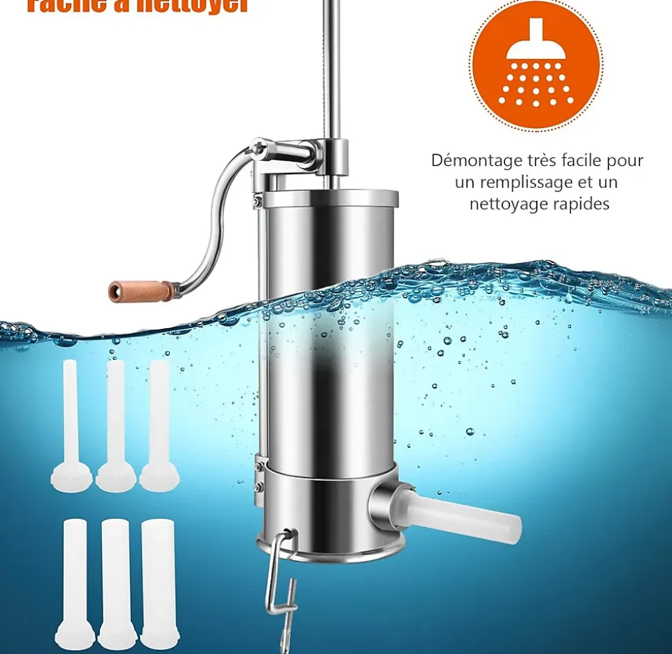 - Grande capacité: De nombreux styles de poussoirs à saucisses ont une capacité de plus de 3 L, jusqu’à 6 L, ce qui peut mettre de la viande de grande capacité en même temps, réduire le nombre d’ajouts fréquents et faire des saucisses qui peuvent répondre aux besoins des familles.