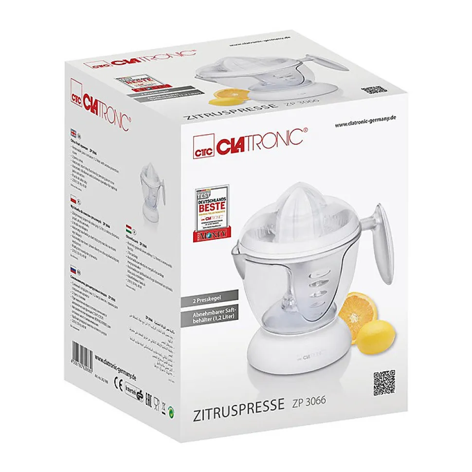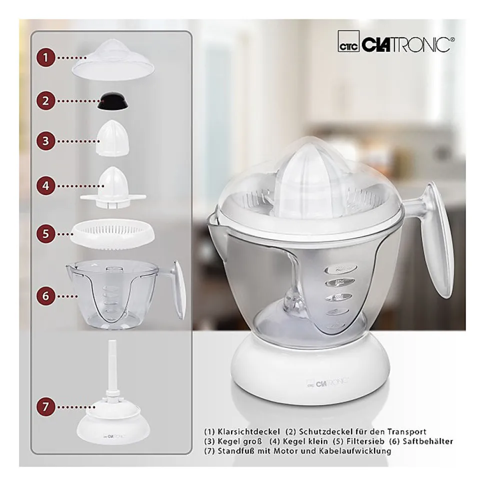 Récipient à jus amovible avec couvercle de protection de l’arôme (1,2 litres)2 cônes de pressageFonction marche/arrêt automatique par pression sur le cône presseurFonctionnement automatique dans le sens horaire/antihoraire pour une extraction optimale du jusRangement pratique du cordon230 V, 50 Hz, 40 W