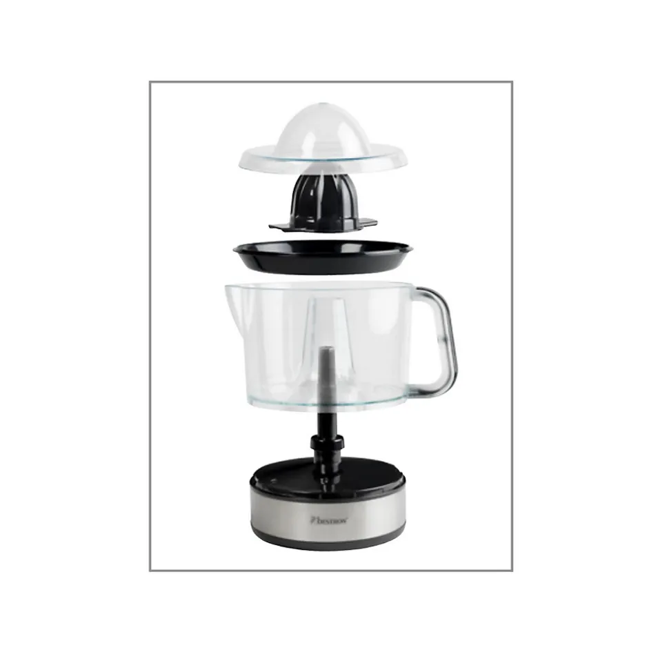 Presse-agrumes 40w noir Bestron – Presse-agrumes Bestron ACJ350Z doté d’un grand réservoir de jus amovible d’environ 700 ml. Tournant automatique à gauche et à droite pour un résultat optimal. Deux cônes de presse de tailles différentes pour tous les types d’agrumes. Couvercle transparent, peut également être utilisé pour faire pression. Très facile à nettoyer, tous les articles sauf le logement du moteur va au lave-vaisselle. Pieds antidérapants garantissent une stabilité impeccable. Avec label de qualité certifié GS = normes de qualité et de sécurité très strictes. – Type de produit : Presse-agrumes.Puissance : 40 W.Matière : Plastique.Capacité du réservoir à jus : 0.7 L.2 cônes.Couvercle transparent.Pieds antidérapants.Alimentation : 220-240 V, 50/60 Hz.Coloris : Noir.Dimensions (Lxlxh) : 15 x 19 x 20.5 cm.Poids net : 0.65 kg.