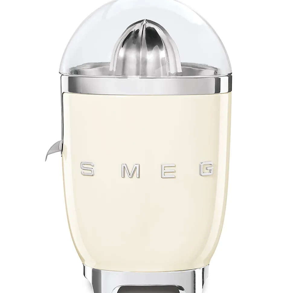 Presse-agrumes 70w crème Smeg – Presse-agrumes Années 50 Smeg CJF11CREU. La gamme Années 50 se caractérise par un incomparable look rétro et vintage avec une forme bombée et compacte. Pensée pour ceux qui souhaitent vivre une expérience de chef, mais pas seulement… aussi pour ceux qui aiment s’entourer d’objets au fort caractère esthétique sans renoncer à la qualité des résultats. Un presse-agrumes design et efficace ! Filtre et cône universels pour un pressage facile de tous les agrumes : citrons, oranges, pamplemousses, etc …. – Type de produit : Presse-agrumes.Gamme : Années 50.Puissance (W) : 70.Matière de l’appareil : Plastique.Système de pressage : Avec mise en marche automatique.Double sens de rotation : Non.Rangement du cordon : Intégré.Autre(s) : Bec verseur anti-goutte inox.Autre(s) accessoire(s) inclus : Cône universel, Couvercle Tritan Renew.Sécurité(s) : Base antidérapante.Longueur du cordon (m) : 1.Dimensions (cm) : 28.1 x 16.6 x 16.6.Couleur : Crème.Couleur(s) secondaire(s) : Chromé brillant.Poids (kg) : 2.56.