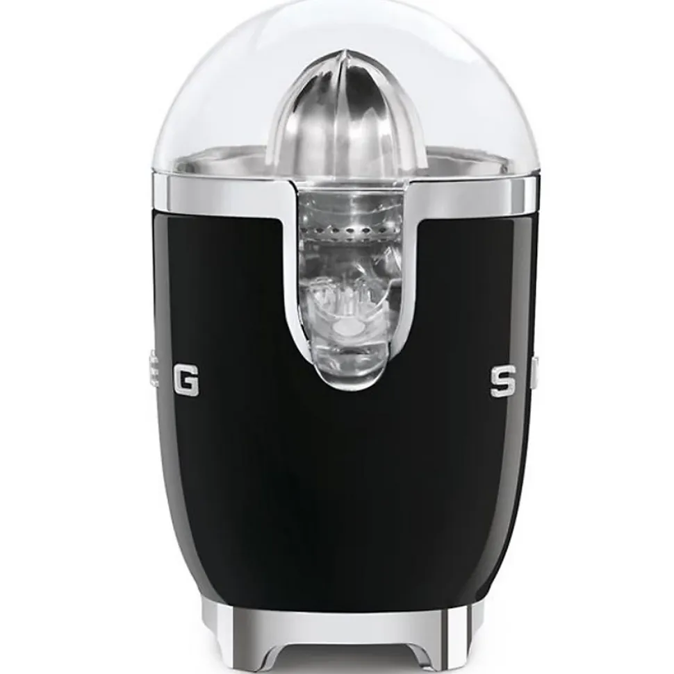 Presse-agrumes 70w noir Smeg – Presse-agrumes Années 50 Smeg CJF11BLEU. La gamme Années 50 se caractérise par un incomparable look rétro et vintage avec une forme bombée et compacte. Pensée pour ceux qui souhaitent vivre une expérience de chef, mais pas seulement… aussi pour ceux qui aiment s’entourer d’objets au fort caractère esthétique sans renoncer à la qualité des résultats. Un presse-agrumes design et efficace ! Cône universel pour un pressage facile de tous les agrumes : citrons, oranges, pamplemousses, etc … – Type de produit : Presse-agrumes.Gamme : Années 50.Puissance (W) : 70.Matière de l’appareil : Plastique.Système de pressage : Avec mise en marche automatique.Double sens de rotation : Non.Couleur : Noir.Finition : brillant.Rangement du cordon : Intégré.Autre(s) : Bec verseur anti-goutte inox.Autre(s) accessoire(s) inclus : Cône universel, Couvercle Tritan Renew.Sécurité(s) : Base antidérapante.Longueur du cordon (m) : 1.Tension (V) 220-240 V.Fréquence (Hz) 50/60 Hz.Largeur du produit : 16.5 cm.Profondeur du produit : 18.9 cm.Hauteur du produit : 28.1cm.Poids (kg) : 2.56.