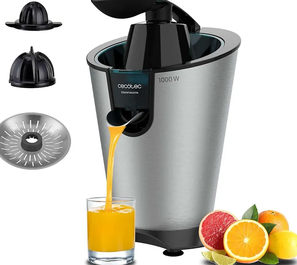 Presse-agrumes électrique de 1000 W avec bras levier pour extraire rapidement et facilement le jus des agrumes, tirant le meilleur parti de vos fruits. Équipé de deux cônes amovibles pour s’adapter aux petits et grands agrumes, ainsi que d’un filtre en acier inoxydable qui maximise la saveur et simplifie le nettoyage. Le système d’extraction continue permet de verser le jus directement dans le verre sans effort, tandis que le système anti-gouttes assure un versement propre et précis. Design élégant en acier inoxydable et nettoyage facile des pièces amovibles, certaines compatibles lave-vaisselle.