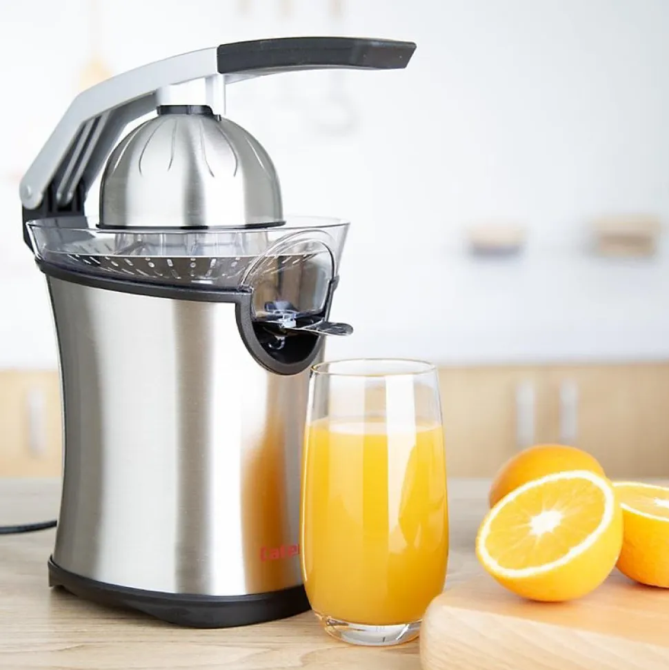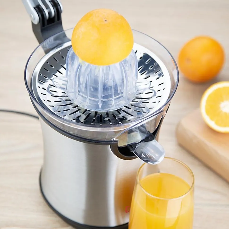 Presse-Agrumes Electrique 160 W – Caterlite Découvrez la puissance de ce presse-agrumes électrique professionnel à haut rendement, conçue pour extraire le jus des fruits, légumes et légumes-feuilles avec une efficacité impressionnante. Grâce à son processus de pressage doux, elle minimise la chaleur, préservant ainsi les enzymes naturelles et garantissant un jus riche en nutriments qui reste frais plus longtemps. Avec son boîtier en acier inoxydable élégant, son levier en aluminium moulé pour une utilisation aisée et son filtre en acier inoxydable, chaque gorgée de votre orange, citron ou pamplemousse devient un véritable délice.