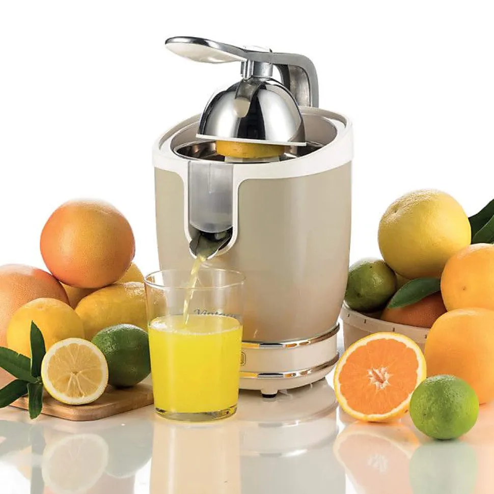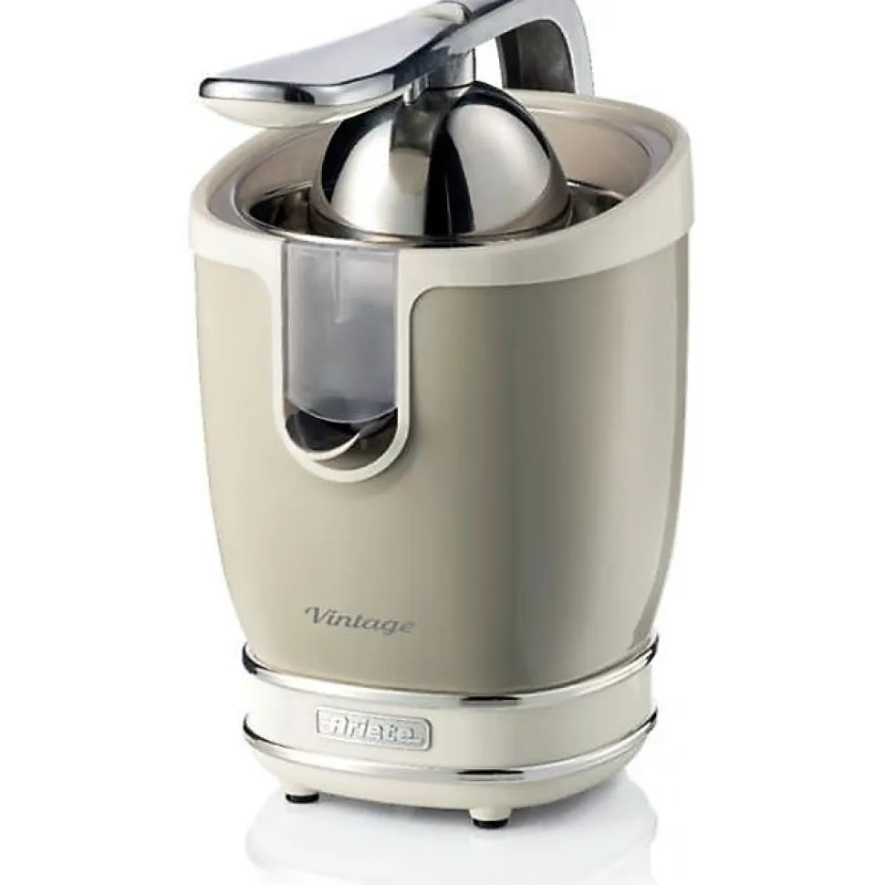 Le presse-agrumes électrique Vintage ARIETE est un appareil puissant et silencieux qui vous permettra de presser facilement les fruits grâce à son levier de pression. Son design rétro typique de la gamme Vintage Ariete avec un corps en métal résistant et des finitions chromées apportera une touche de style à votre cuisine.
