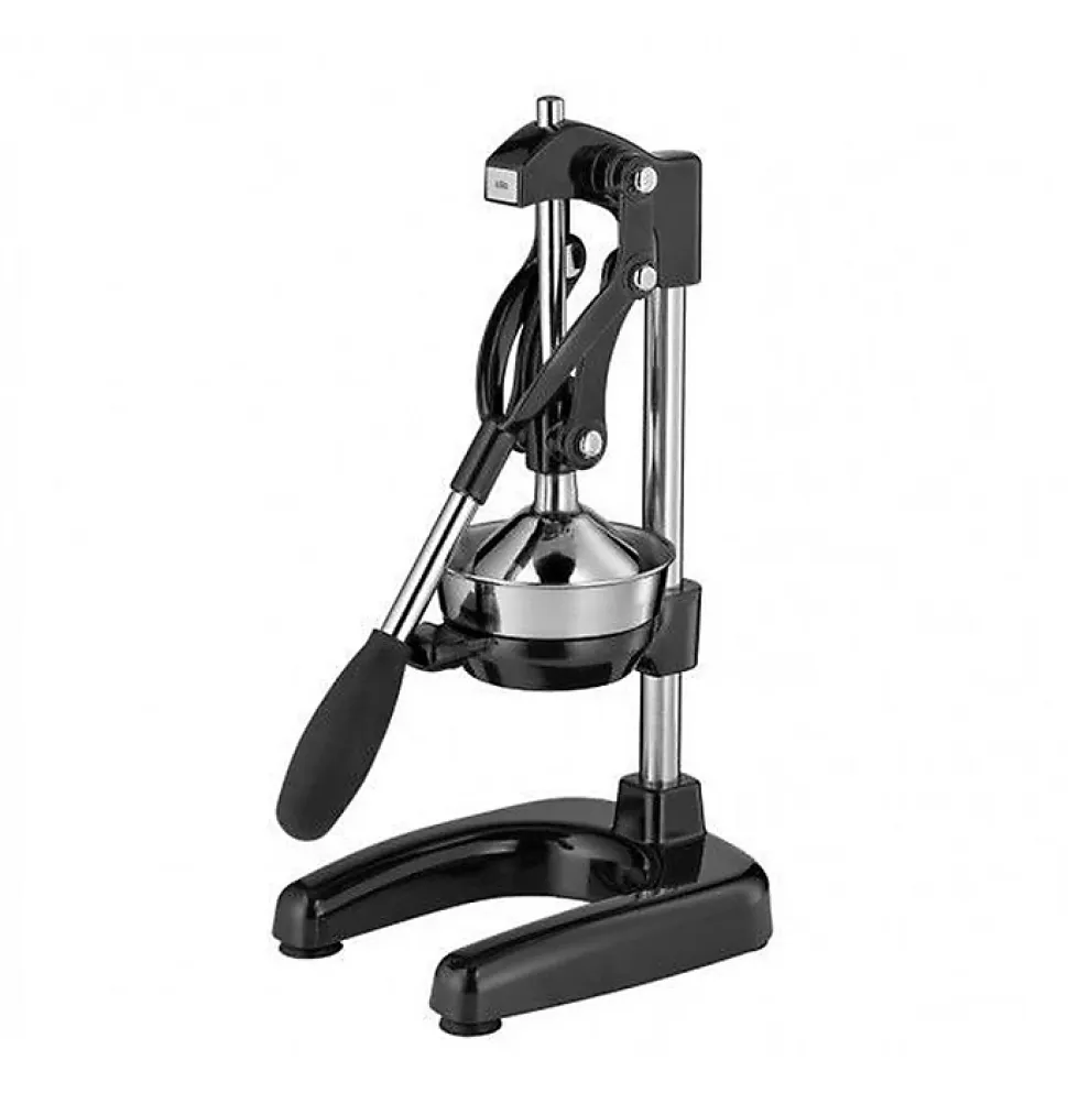 Presse-agrumes manuel noir Kuchenprofi – Presse-agrumes manuel Amalfi KUCHENPROFI 309140 stable, qualité professionnelle. Jusqu’à 25% de jus en plus par rapport aux presses à jus classiques. Peu d’effort grâce à un effet de levier efficace. Les grains et la pulpe restent dans le cône de presse. Cône de presse et entonnoir en acier inoxydable. Manuel d’utilisation à l’intérieur. Remarque : ne convient pas pour le pressage des grenades. – Type de produit : Presse agrumes à levier.Matière : Acier inoxydable.Socle sur ventouse.Coloris : Noir.Dimension : 18 x 22 x 43 cm.Poids : 5,490 kg.
