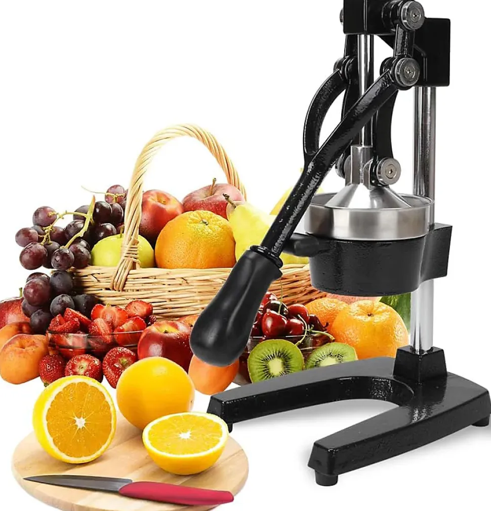 L’extracteur de jus est fabriqué à partir d’une combinaison d’acier inoxydable et de fonte de haute qualité, robuste et durable, stable et fiable. Entièrement manuel, pas d’électricité, pas de moteur, pas de bruit. Le fond de cet extracteur de jus est antidérapant, de sorte qu’il ne glisse pas lorsqu’il est posé sur une table ou un plan de travail de cuisine. Dimensions : 14,6 « H x 8,3 « L x 6,3 « L, poids 6,5kg.L’extracteur de jus est doté d’un effet de levier optimal et d’un mécanisme de presse à bras de levier nouvellement développé pour presser le jus manuellement sans effort. Le rendement en jus est supérieur de 20 % à celui des presses conventionnelles.Cet extracteur de jus convient à tous les fruits de petite et moyenne taille (utilisés après avoir été coupés en tranches). Il permet de presser parfaitement de délicieux jus de légumes et de fruits, rapidement, de manière nutritive et saine.