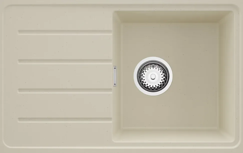 PRIMAGRAN Evier Cuisine en Granit Beige 70x44cm, Lavabo 1 bac + Kit de Vidage, Évier à Encastrer au meuble 45cm – Copenhague Easy