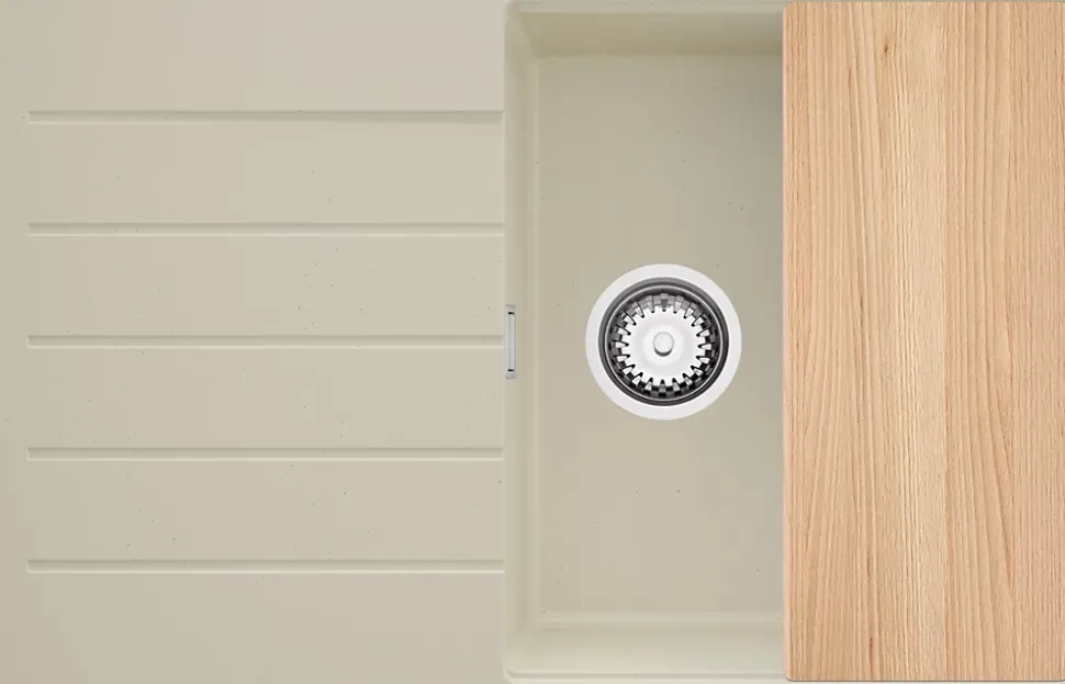 - ✅ Le kit comprend – Évier Copenhague 780-50 Top, kit complet de vidange (siphon haute qualité, trop-plein, raccordement supplémentaire pour lave-linge ou lave-vaisselle), planche à découper.