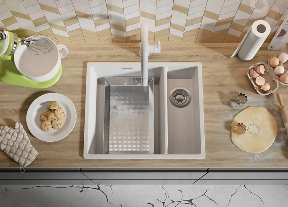 - ✅ FLEXIBILITÉ DE LA CONCEPTION grâce à l’installation du robinet de cuisine et des accessoires dans les trous réalisés dans le plan de travail. Vous pouvez placer le distributeur ou le bouton du siphon de chaque côté, en adaptant les solutions à vos besoins. Les accessoires installés augmentent le confort du travail quotidien, offrant un ajustement parfait des fonctions pratiques.