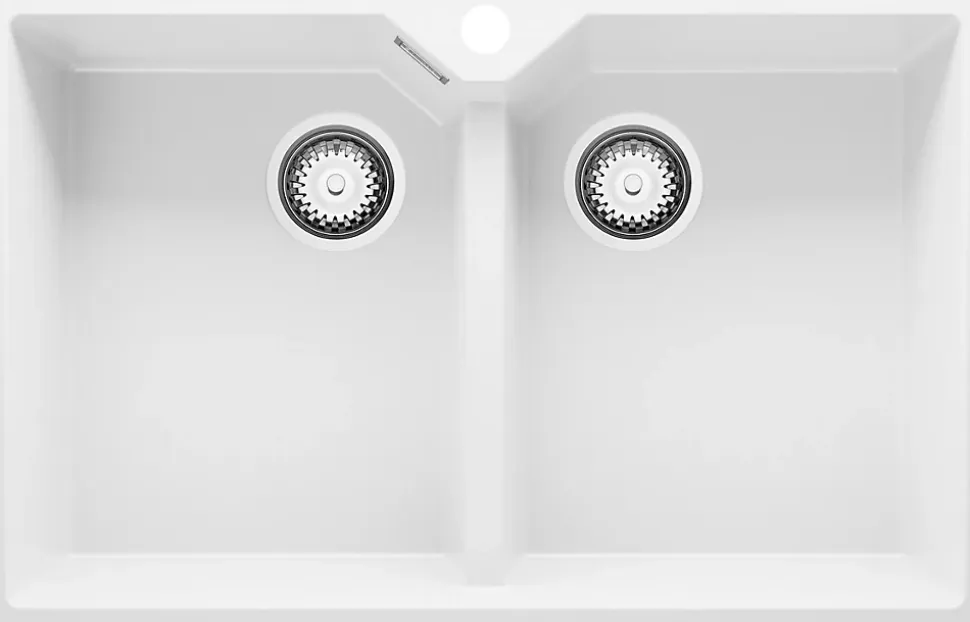 PRIMAGRAN Evier Cuisine en Granit Blanc 78x50cm, Lavabo 2 bacs + Kit de Vidage, Évier à Encastrer au meuble 80cm – Madrid Twin