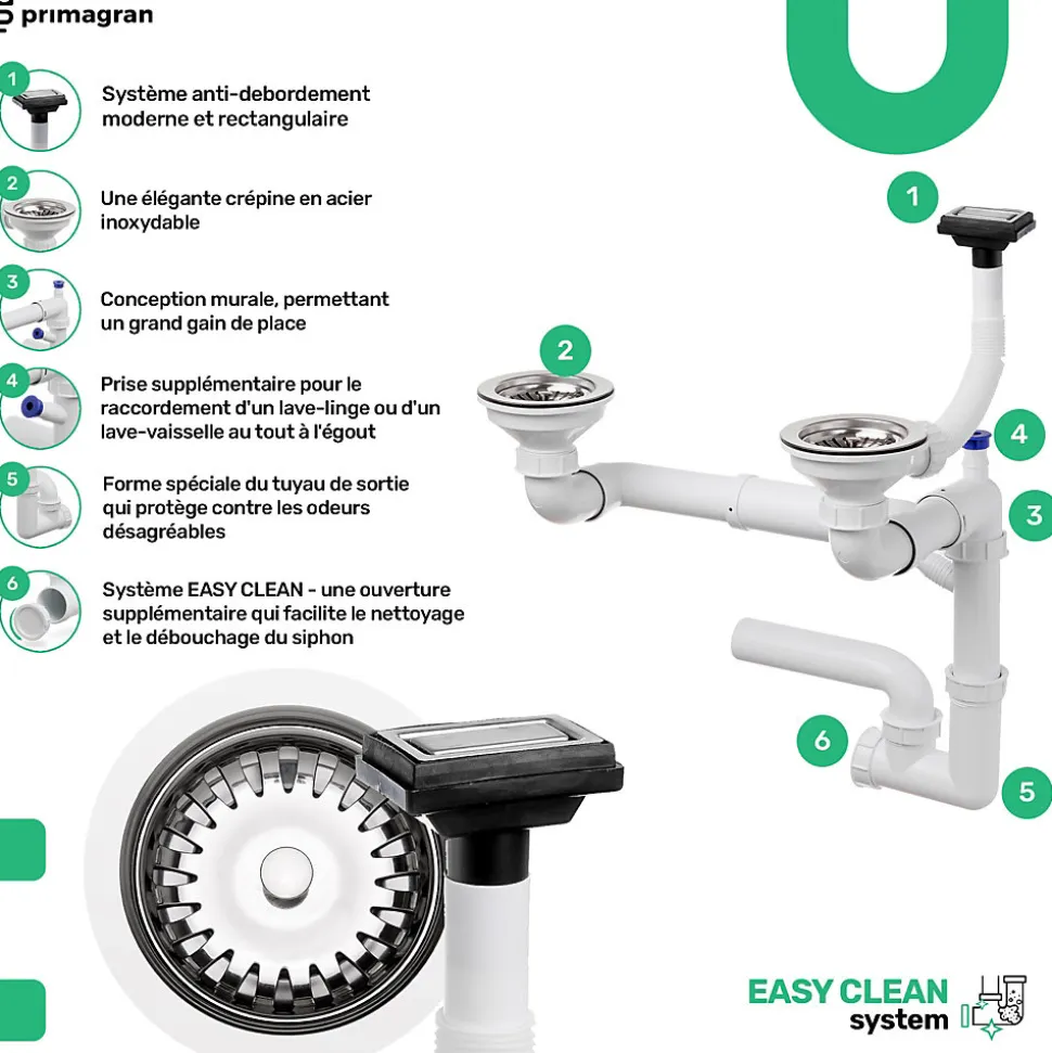 - ✅ Le kit comprend – Évier Paris 80 Chef, robinet de cuisine flexible Primagran 6030 blanc avec Bec extractible, kit complet de vidange (siphon haute qualité, trop-plein, raccordement supplémentaire pour lave-linge ou lave-vaisselle), flexibles de raccordement 3/8” de 400 mm, double joints d’étanchéité, Bac d’égouttage, égouttoir enroulable, planche à découper.