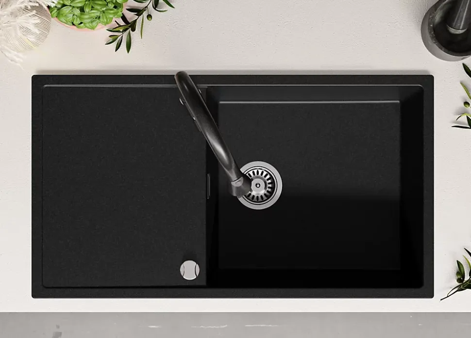 - ✅ Le kit comprend – Évier Ibiza 900-60, kit complet de vidange (siphon haute qualité, trop-plein, raccordement supplémentaire pour lave-linge ou lave-vaisselle).
