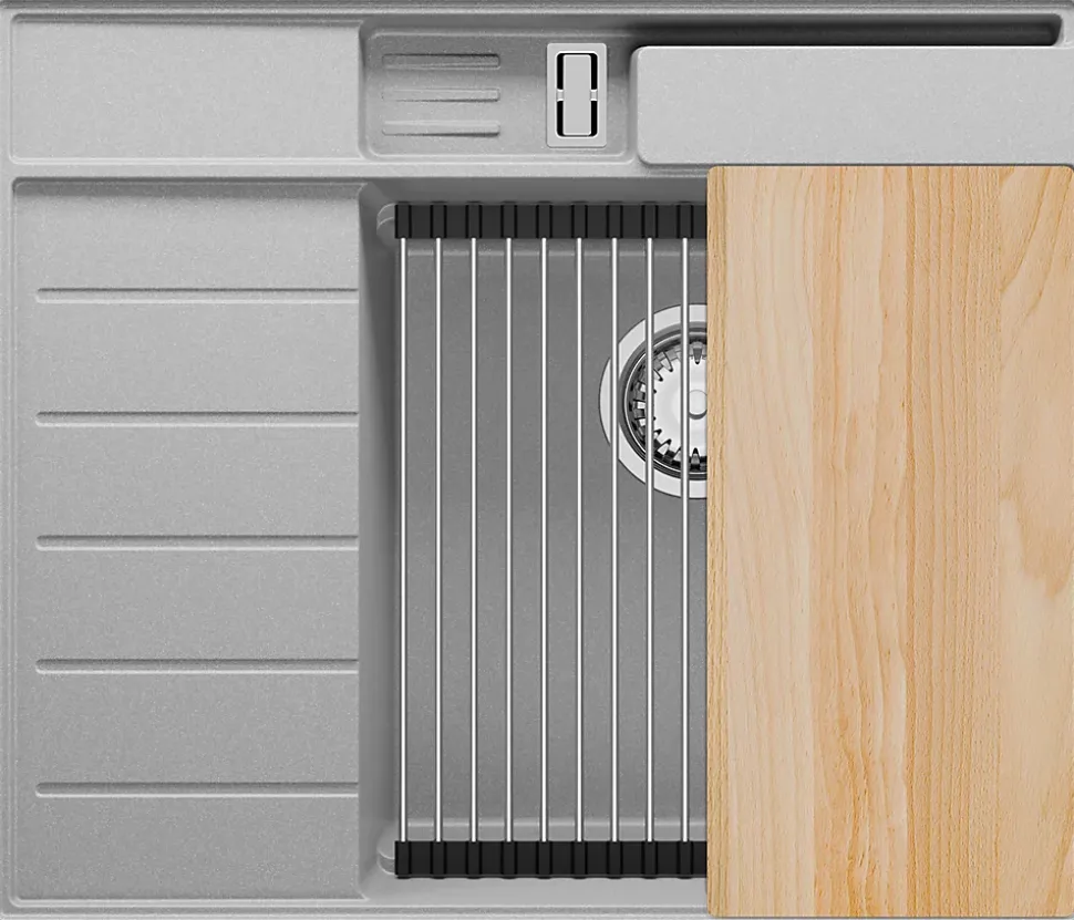 - ✅ Le kit comprend – Évier Sydney 620-45 Pocket Ergo Multilevel (Left), kit complet de vidange (siphon haute qualité, trop-plein, raccordement supplémentaire pour lave-linge ou lave-vaisselle), égouttoir enroulable, planche à découper.