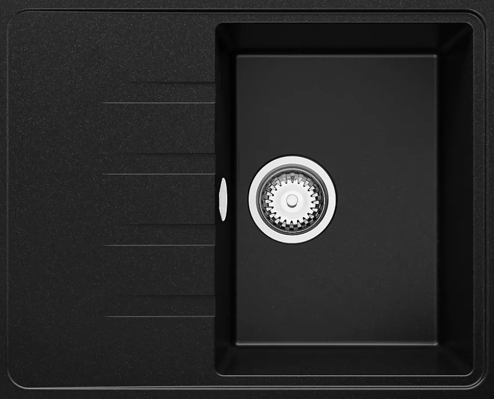 PRIMAGRAN Evier Cuisine en Granit Noir 62x50cm, Lavabo 1 bac + Kit de Vidage, Évier à Encastrer au meuble 40cm – Milan