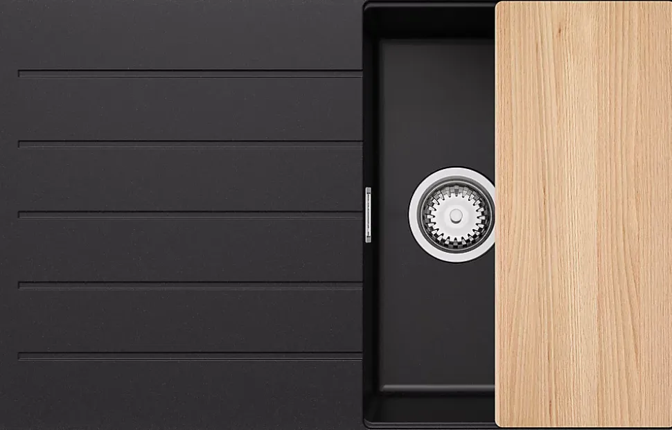 - ✅ Le kit comprend – Évier Copenhague 780-45 Top, kit complet de vidange (siphon haute qualité, trop-plein, raccordement supplémentaire pour lave-linge ou lave-vaisselle), planche à découper.