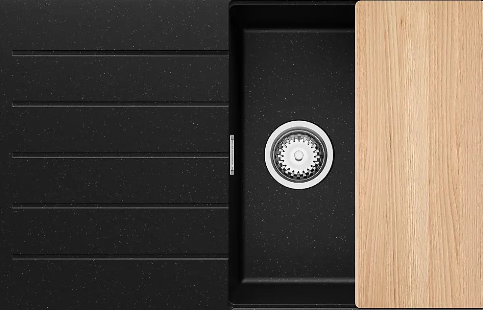 - ✅ Le kit comprend – Évier Copenhague 780-50 Top, kit complet de vidange (siphon haute qualité, trop-plein, raccordement supplémentaire pour lave-linge ou lave-vaisselle), planche à découper.