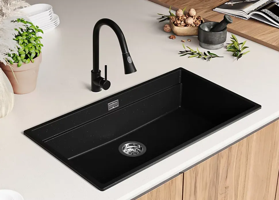 - ✅ Le kit comprend – Évier Prague 90 Level Slim, kit complet de vidange (siphon haute qualité, trop-plein, raccordement supplémentaire pour lave-linge ou lave-vaisselle), égouttoir enroulable.