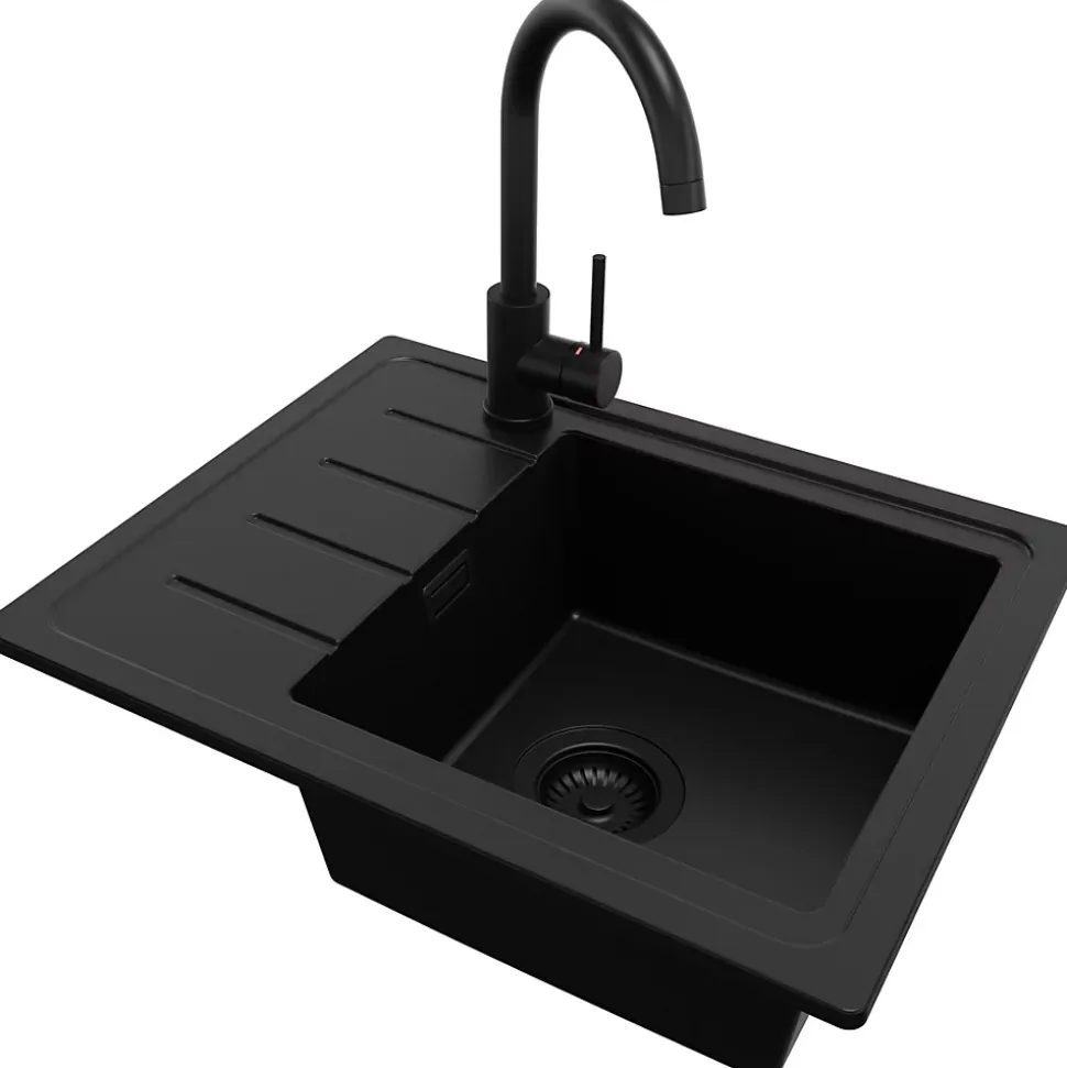 - ✅ Le kit comprend – Évier Copenhague 550-45 Easy, robinet de cuisine Primagran 5010 noir harmonisé en couleur, kit complet de vidange (siphon haute qualité, trop-plein, raccordement supplémentaire pour lave-linge ou lave-vaisselle), flexibles de raccordement 3/8” de 400 mm, double joints d’étanchéité.