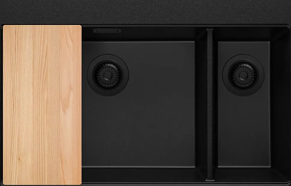 Évier en granit – Oslo 80 Duo Top – minimalisme pratique dans votre cuisine Le modèle Deux bacs Oslo 80 Duo Top présente une forme simple et minimaliste de grande taille. La double cuve offre plus d’espace pour le rangement de la vaisselle, ce qui est idéal pour ceux qui nécessitent plus d’espace. La possibilité de stocker simultanément la vaisselle sale tout en conservant de la place pour effectuer d’autres tâches le rend confortable et extrêmement pratique à utiliser. Le système Top – c’est-à-dire un rebord spécial – permet de placer de manière stable un égouttoir enroulable, un bac d’égouttage ou une planche à découper, qui s’aligne parfaitement avec le plan de travail, vous offrant encore plus d’espace de travail. La conception innovante de l’évier permet de rincer facilement les aliments, de sécher la vaisselle ou de couper au-dessus de l’évier. Vous pouvez désormais transformer votre évier en une station de travail multifonctionnelle, organisant un espace de travail supplémentaire dans la cuisine. L’évier Oslo 80 Duo Top peut être installé dans un meuble de 80, 90 cm et plus. Le kit comprend: Évier Oslo 80 Duo Top, kit complet de vidange (siphon haute qualité, trop-plein, raccordement supplémentaire pour lave-linge ou lave-vaisselle), planche à découper.