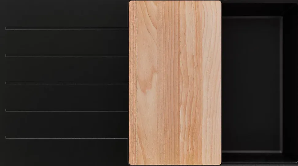 - ✅ Le kit comprend – Évier Copenhague 900-60 Top, kit complet de vidange (siphon haute qualité, trop-plein, raccordement supplémentaire pour lave-linge ou lave-vaisselle), planche à découper.