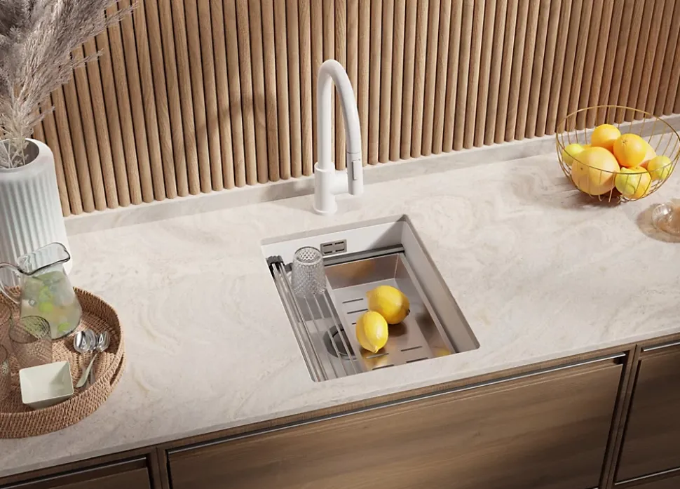 - ✅ Le kit comprend – Évier Prague 40 Level, kit complet de vidange (siphon haute qualité, trop-plein, raccordement supplémentaire pour lave-linge ou lave-vaisselle), égouttoir enroulable.