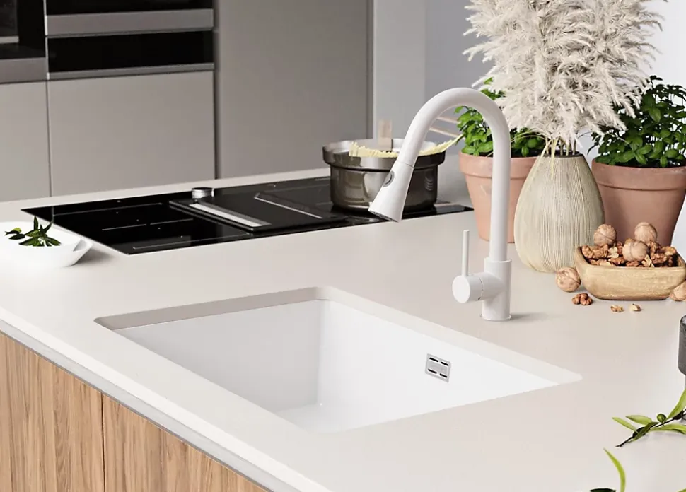 PRIMAGRAN Evier Sous Plan Blanc 66x47cm, Evier en Granit 1 bac + Kit de Vidage, Évier au meuble 70cm – London