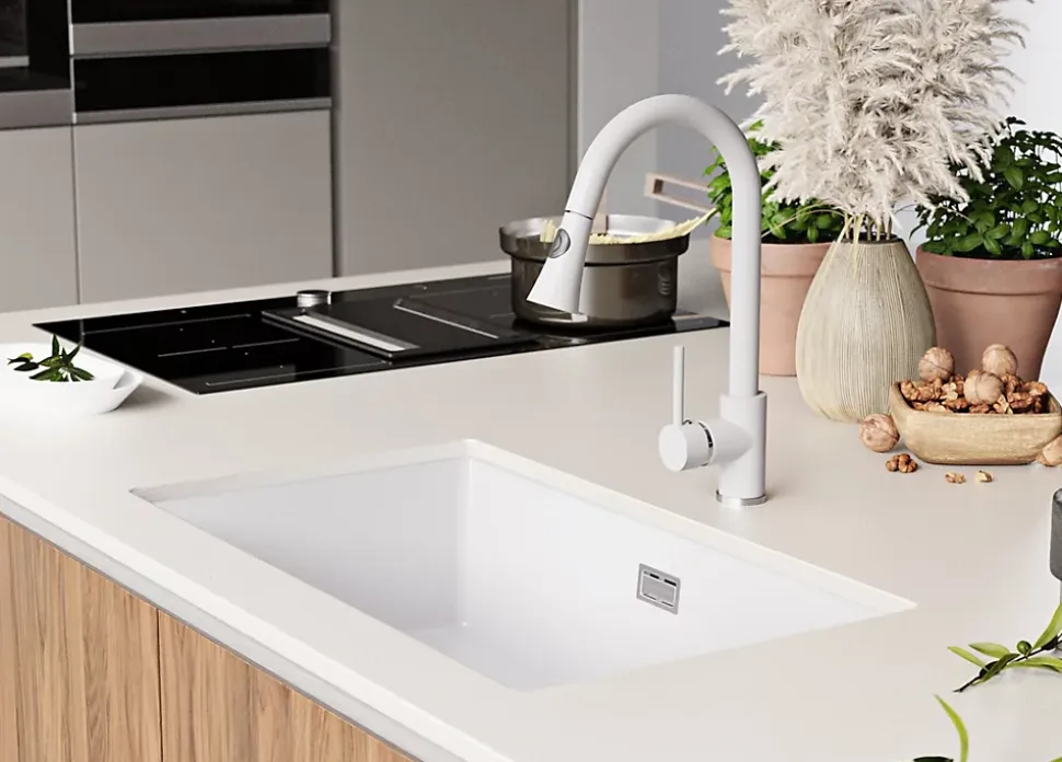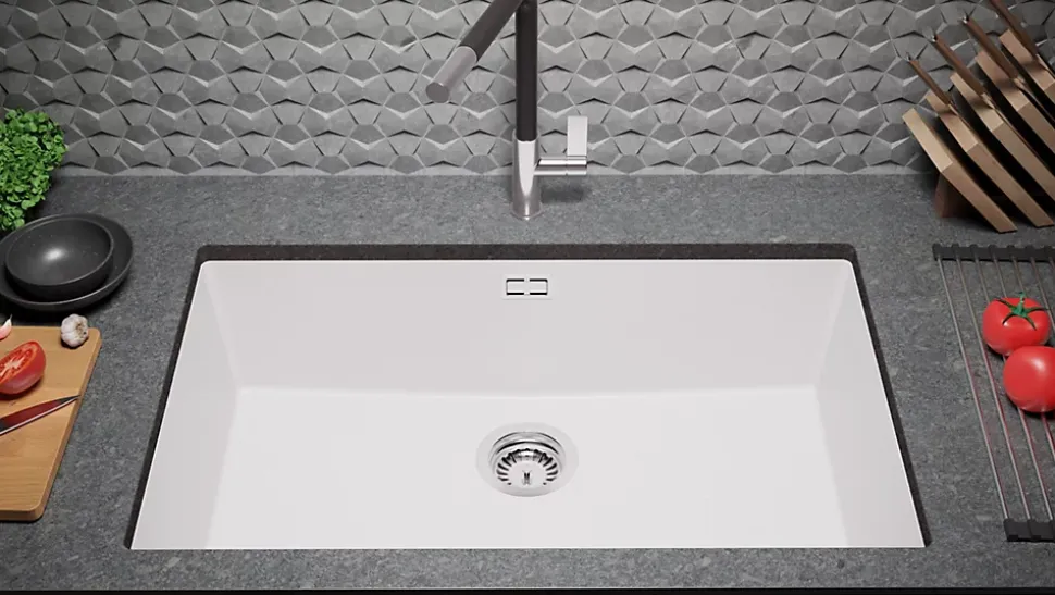 PRIMAGRAN Evier Sous Plan Blanc 76x47cm, Evier en Granit 1 bac + Kit de Vidage, Évier au meuble 80cm – London