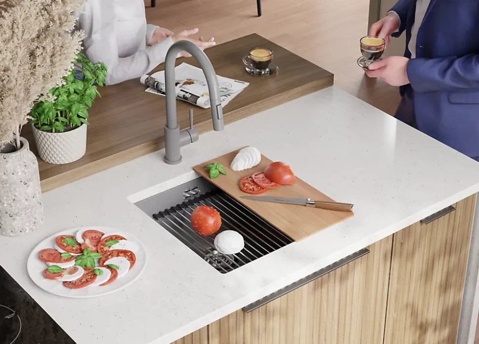 - ✅ SYSTÈME LEVEL c’est-à-dire un travail efficace sur plusieurs niveaux. Vous pouvez facilement placer un égouttoir enroulable ou un bac d’égouttage sur « l’étagère » pour laver et sécher des fruits, des légumes ou des plats ; vous obtenez un espace de travail supplémentaire et votre évier devient un poste de travail multifonctionnel