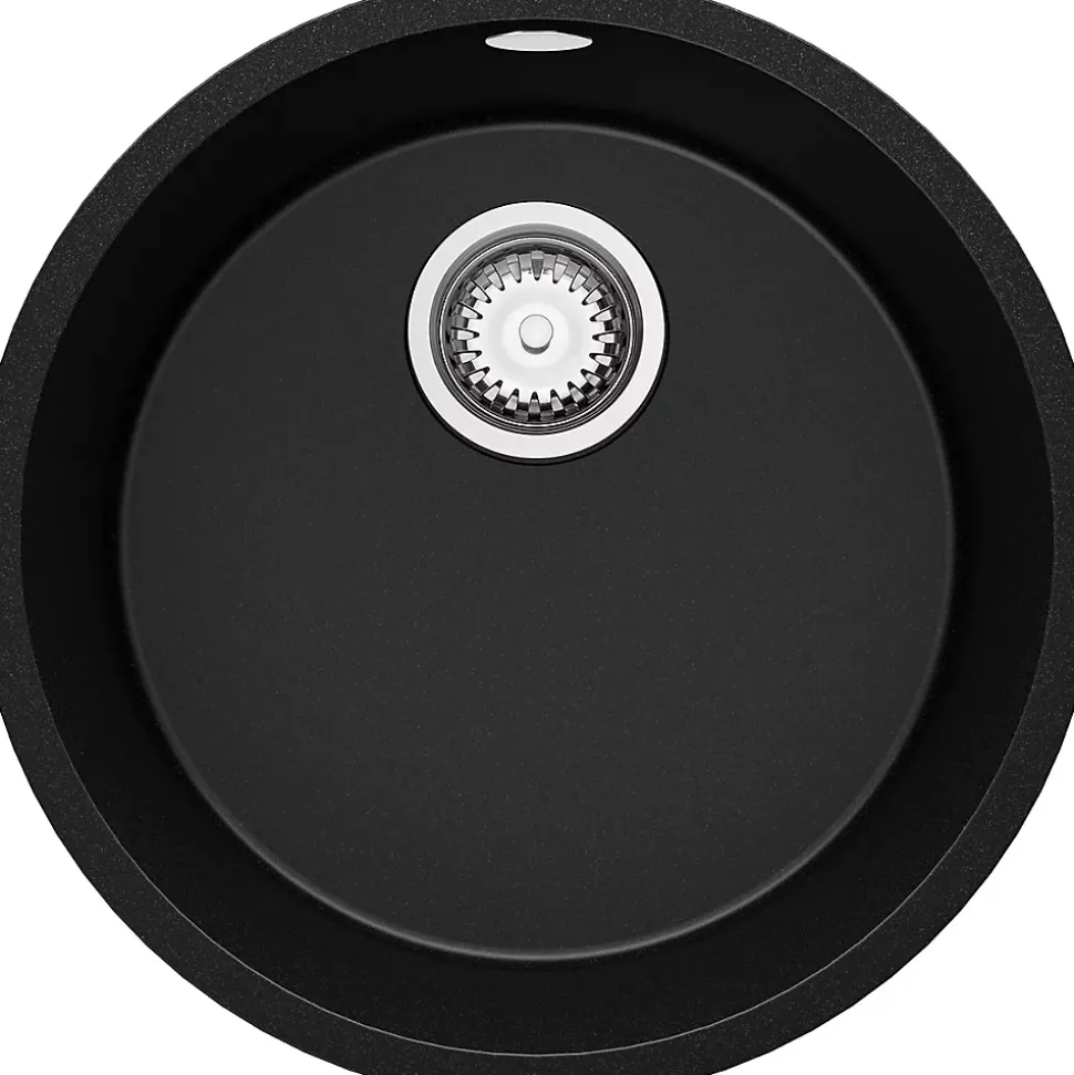PRIMAGRAN Evier Sous Plan Noir 46x46cm, Evier en Granit 1 bac + Kit de Vidage, Évier au meuble 50cm – La Valette