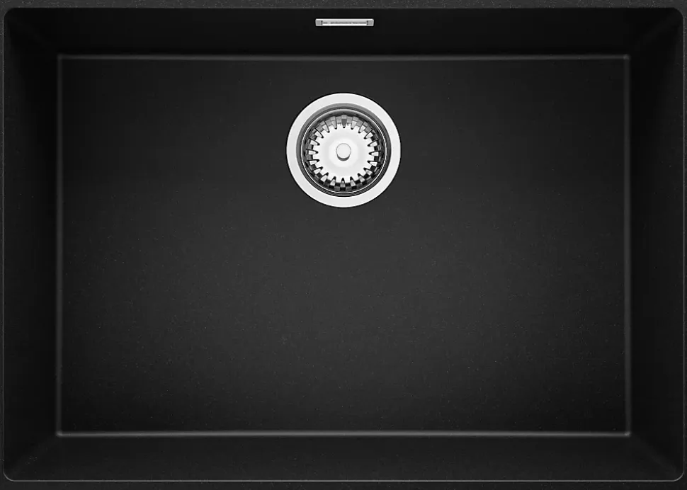 PRIMAGRAN Evier Sous Plan Noir 66x47cm, Evier en Granit 1 bac + Kit de Vidage, Évier au meuble 70cm – London
