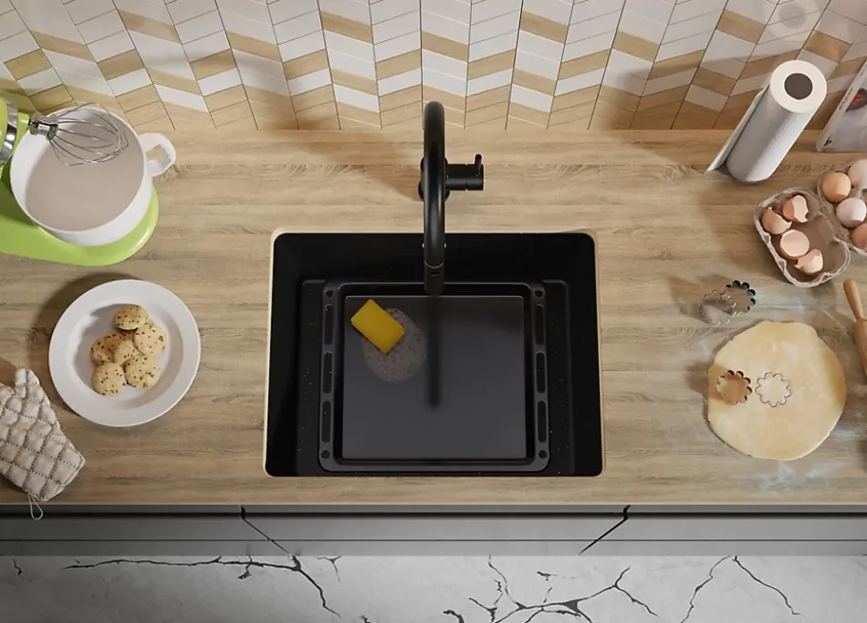 - ✅ GRANDE CUVE – un évier avec un bac mesurant jusqu’à 520 mm x 400 mm x 200 mm s’intègre dans un meuble à partir de 60 cm, assurant fonctionnalité et confort d’utilisation