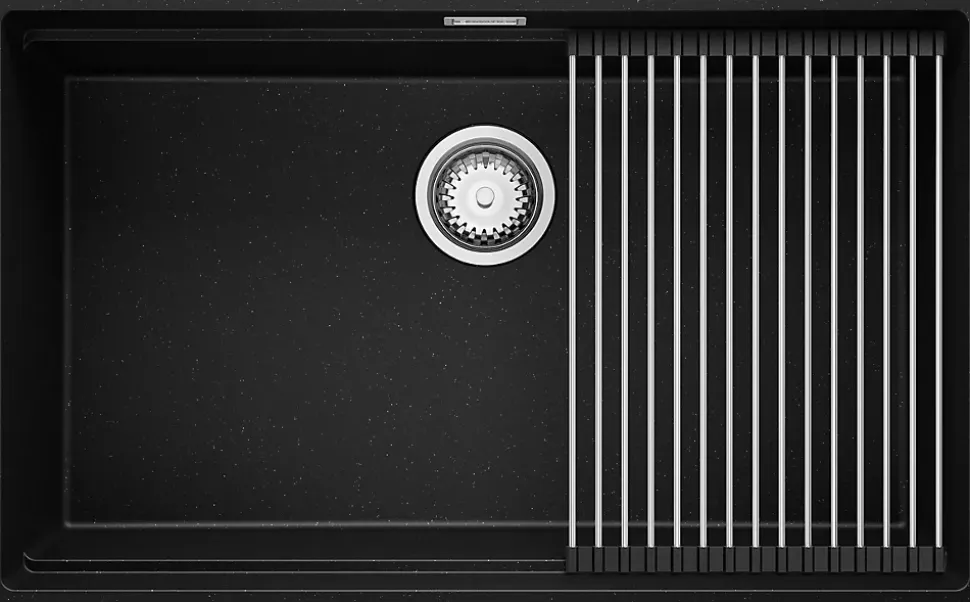- ✅ Le kit comprend – Évier Prague 80 Level, kit complet de vidange (siphon haute qualité, trop-plein, raccordement supplémentaire pour lave-linge ou lave-vaisselle), égouttoir enroulable.