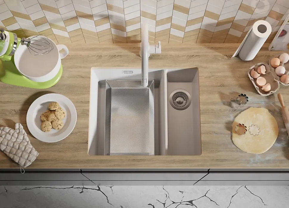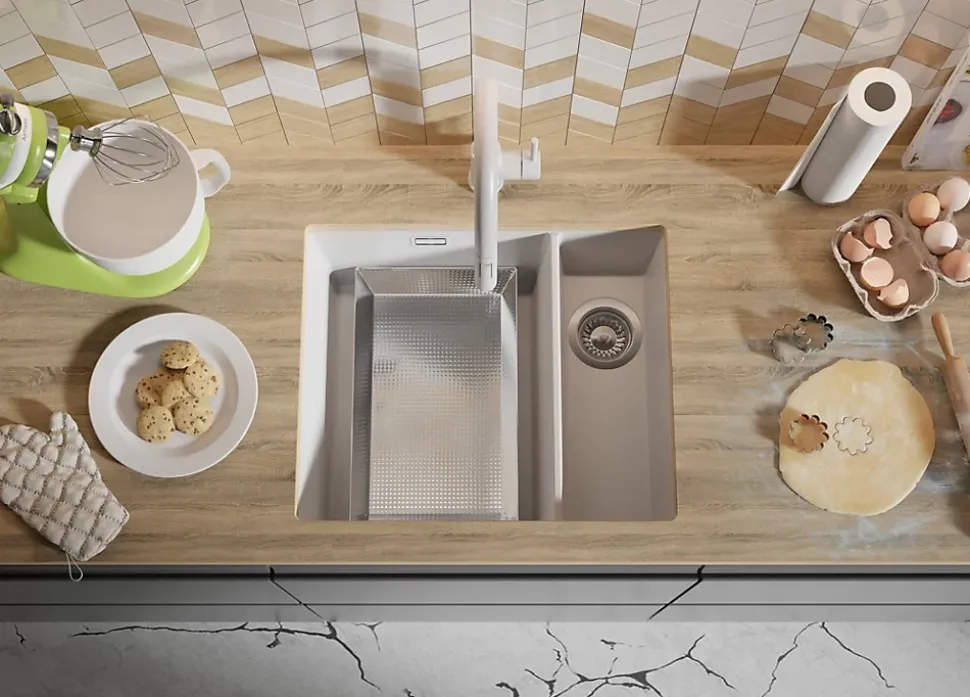 - ✅ FLEXIBILITÉ DE LA CONCEPTION grâce à l’installation du robinet de cuisine et des accessoires dans les trous réalisés dans le plan de travail. Vous pouvez placer le distributeur ou le bouton du siphon de n’importe quel côté, en adaptant les solutions à vos besoins. Les accessoires installés augmentent le confort du travail quotidien, offrant un ajustement parfait des fonctions pratiques.