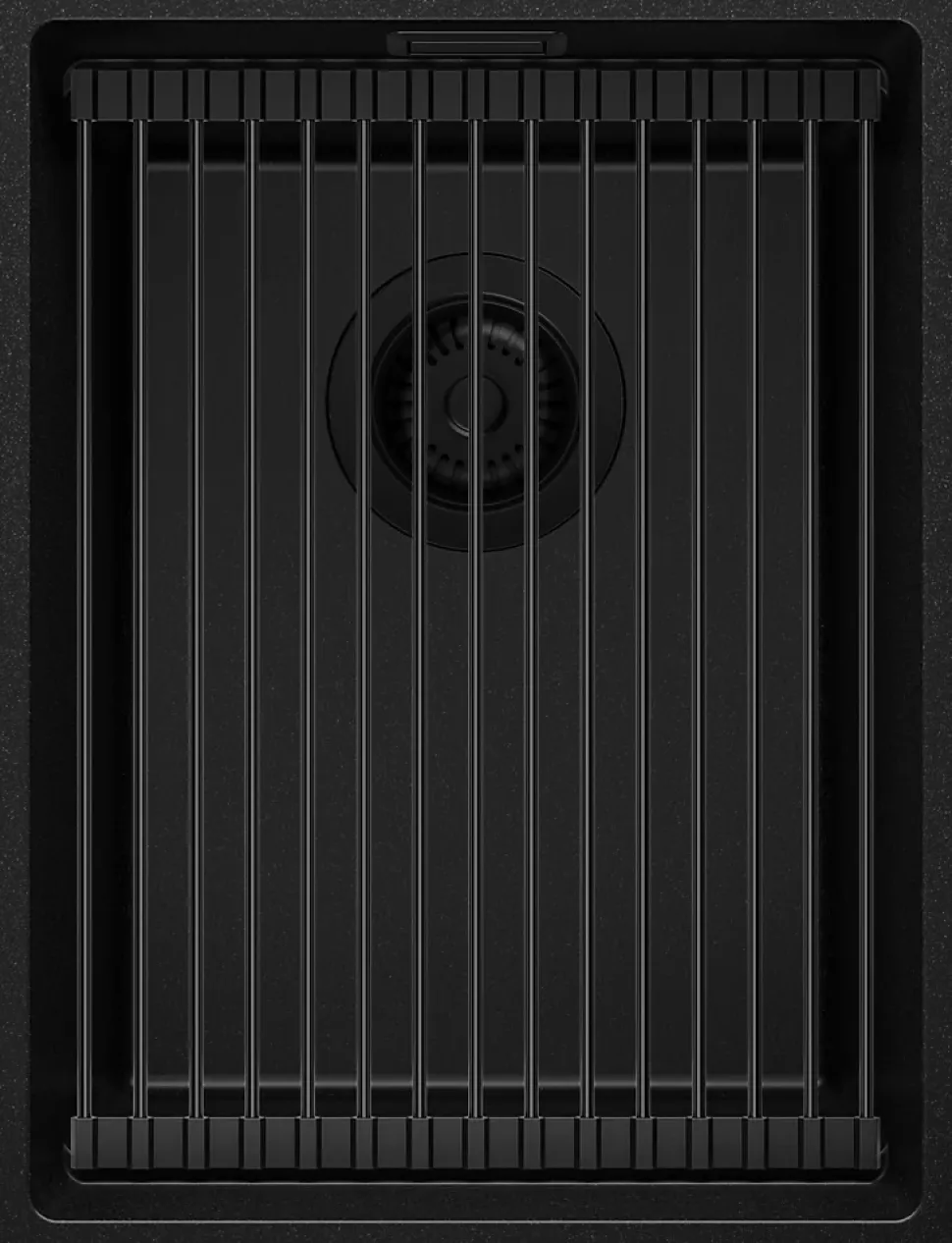 PRIMAGRAN Evier Sous Plan Tout Noir 36x47cm, Evier en Granit 1 bac + Kit de Vidage + Accessoires, Évier au meuble 40cm – Prague