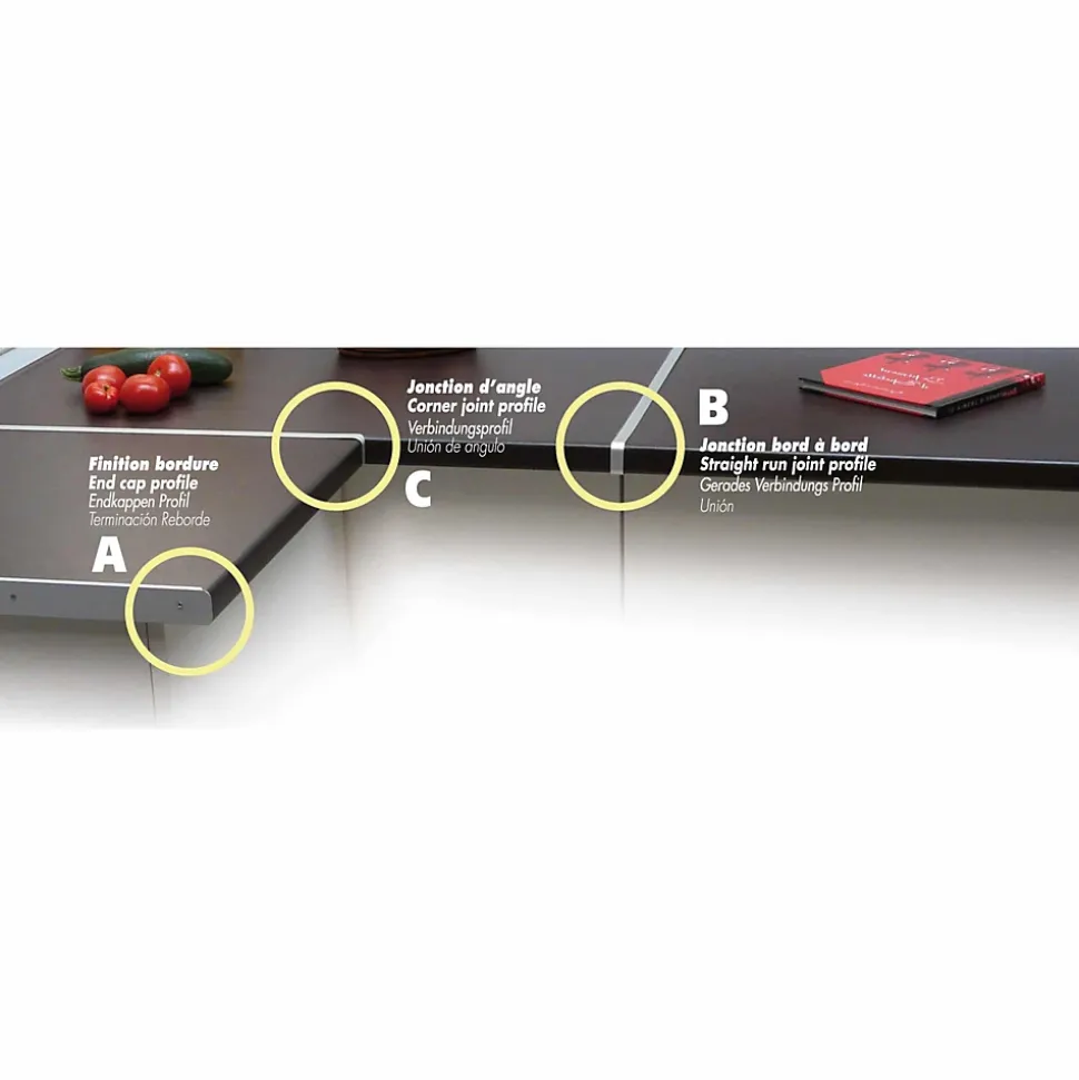 Les profils de finition Nordlinger Pro vous permettront de réaliser une finition parfaite et durable de votre cuisine. Simple et rapide à poser, ils protègent et renforcent la bordure de vos plans de travail de 38 mm dR17;épaisseur.La bordure sR17;applique sur le rebord de votre plan de travail à lR17;aide de silicone pour donner une touche moderne et esthétique, mais aussi pour protéger les bordures et angles de votre plan de travail.Couleur : blancÉpaisseur : 38mmLargeur adaptée à la largeur des plans de travail : 67 cm