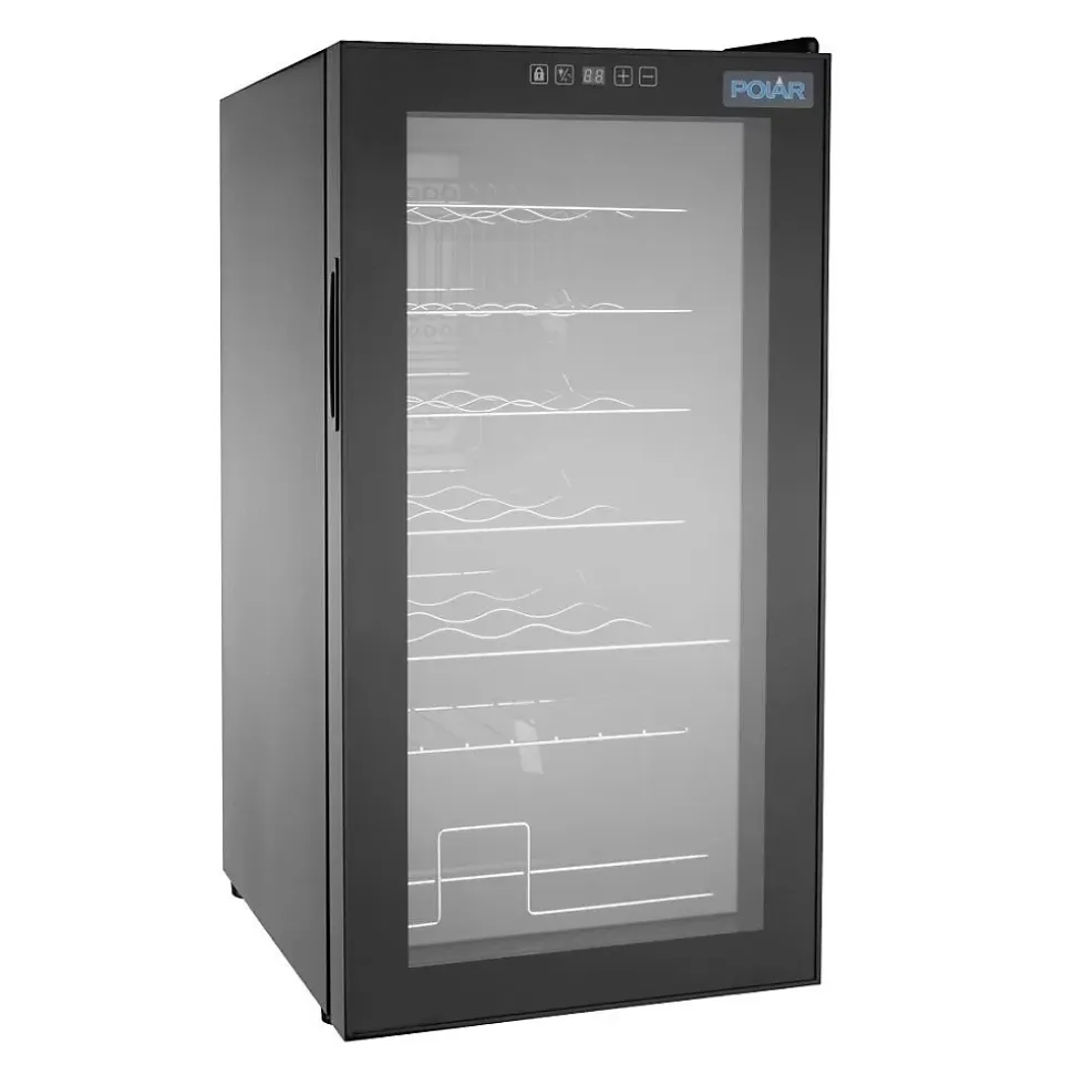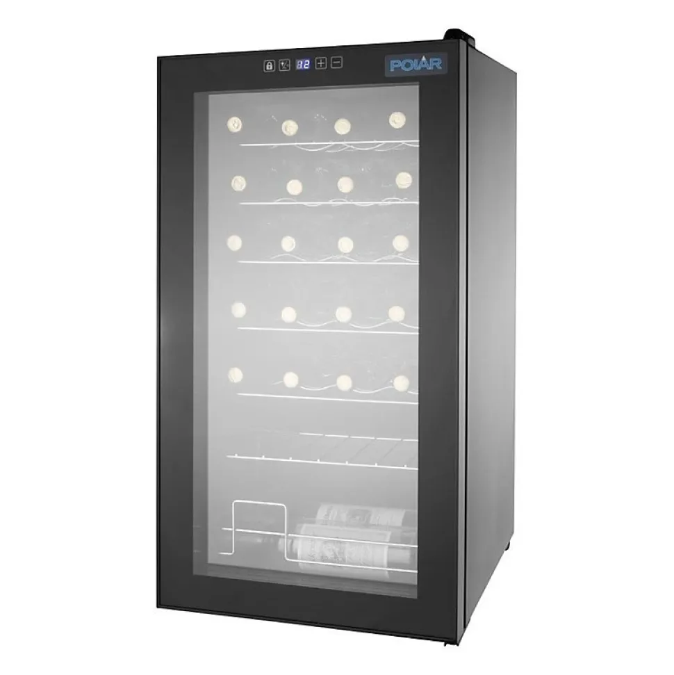 Rafraichisseur de comptoir pour vin avec une capacité de 28 bouteilles Stockez vos vins élégamment et faciles d’accès avec le refroidisseur à vin Polar Série C.Conçu pour stocker efficacement jusqu’à 28 bouteilles de vin, ce modèle offre une capacité intérieure généreuse tout en réduisant vos coûts de fonctionnement. Le panneau de commande intuitif vous offre un contrôle précis de la température, vous pouvez donc compter sur le refroidisseur pour garder vos vins blancs ou mousseux à la température de service parfaite tout au long de votre service.À l’intérieur, le refroidisseur offre un espace de stockage sur six étagères, un espace suffisant pour une grande variété de vins, éclairés par un éclairage LED à économie d’énergie. La conception pratique vous permet de nettoyer facilement l’ensemble de l’unité.Les vitrines réfrigérées Polar Série C sont conçues pour une utilisation commerciale quotidienne dans des environnements moins exigeants. Fonctionnelles et attrayantes, choisissez les vitrines de la Série C si vous n’avez pas besoin d’accéder souvent à l’unité. La gamme Polar Série C fonctionne dans des conditions de température ambiante allant jusqu’à 32 ° C.Capacité: 74 LDimensions: 840(H) x 430(l) x 450(P) mmMatériel: Acier peintRéfrigérant: R600aPlage de Température: 5 °C à 18 °CAlimentation: 220-240VPoids: 22,5 kgPrise: OuiPanneau de commande LED intuitif – facile à utiliserPeut contenir jusqu’à 28 bouteilles de vinÉtagères amovibles pour un accès et un nettoyage facilesContrôle de la température réglable – garde le vi