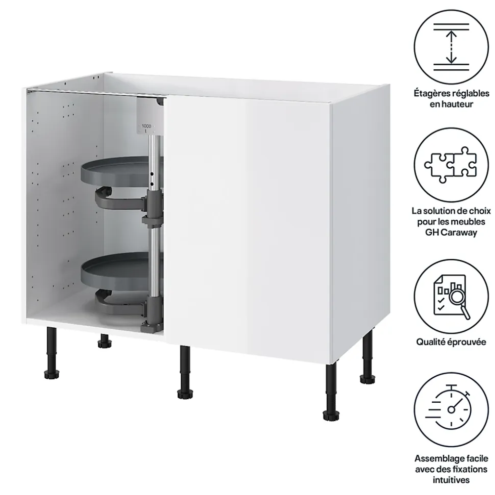 Rangement coulissant d’angle pour meuble de cuisine GoodHome Pebre 100 cm, droite