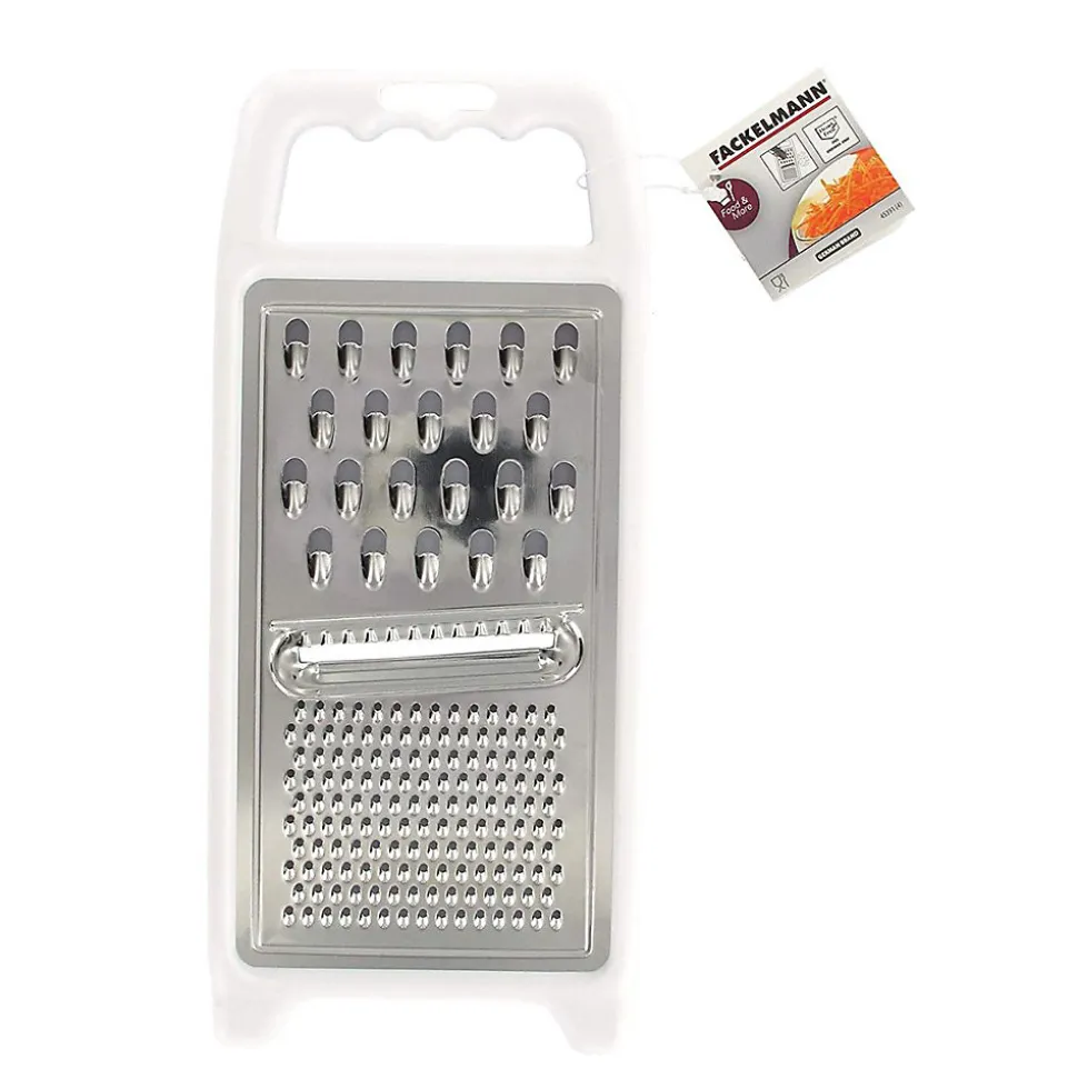 - DESCRIPTION : Fackelmann vous propose cette râpe rectangulaire. Elle comporte une partie découpe en petits ronds, une autre en gros ronds et la partie centrale permet de couper en tranches les aliments. La poignée sur le dessus confère un maintien optimal de la râpe.