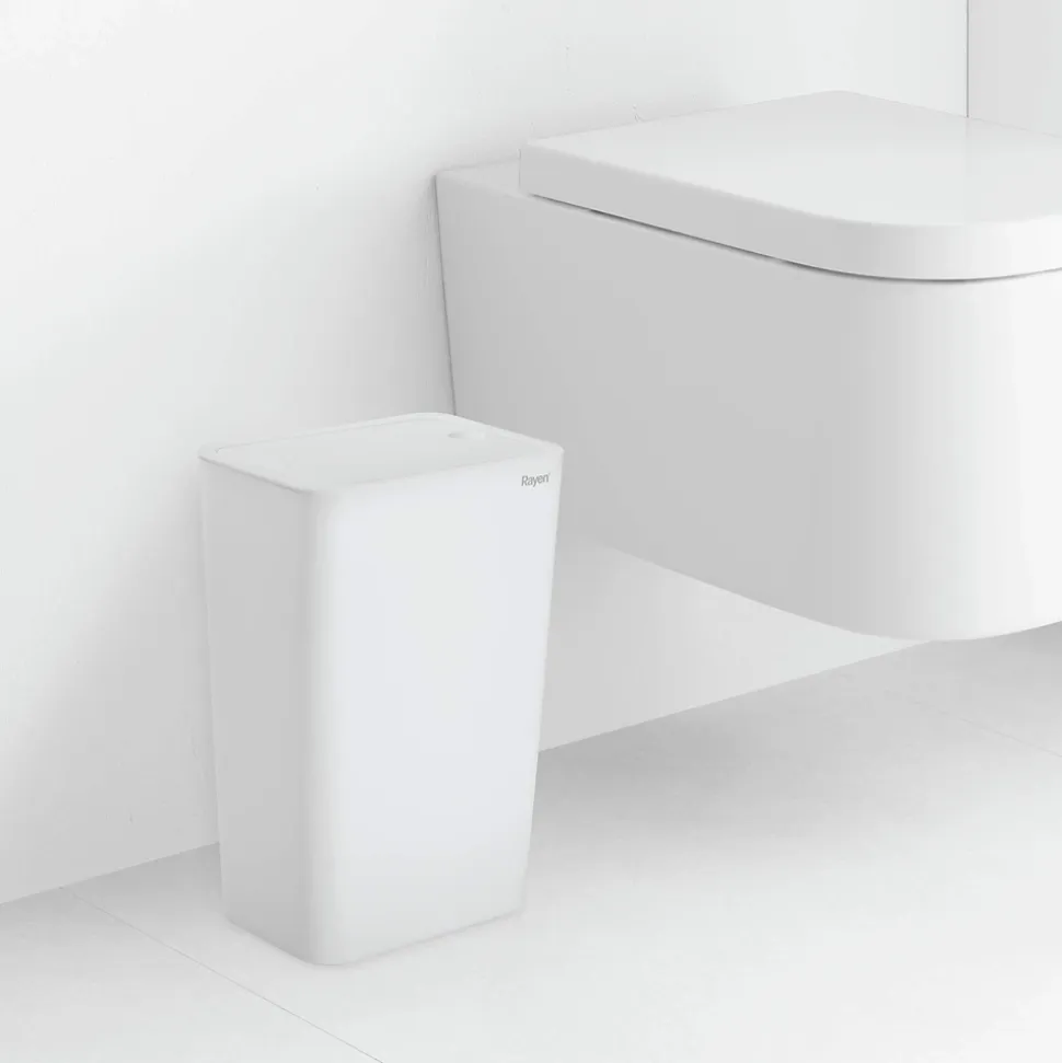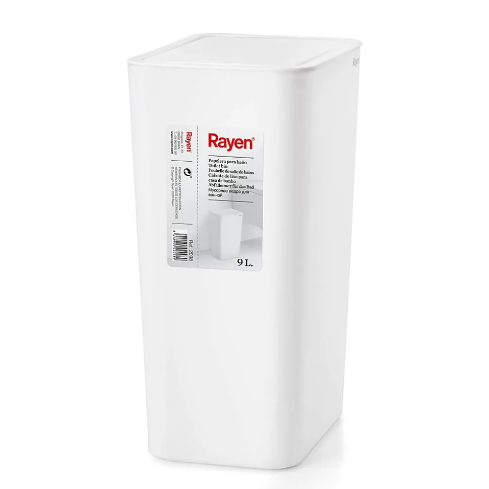 Rayen Poubelle de salle de bain avec couvercle Capacité de 9 litres Blanc, PP, Taille : 22 x 16 x 33 cm