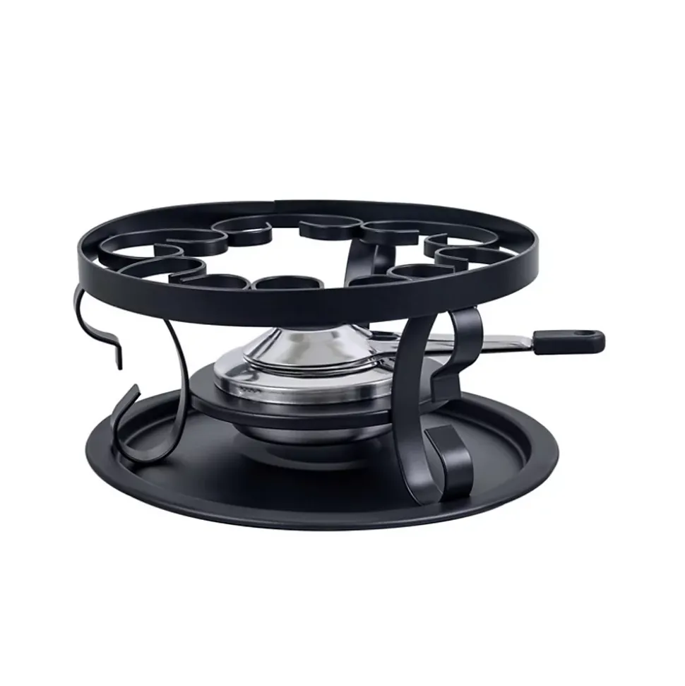 Réchaud à fondue luxe noir Table&cook – Réchaud à fondue luxe SH001 de Table&Cook.Conviviaux non-électrique et accessoires.Réchaud à fondue noir. Luxe. Idéal pour vos soirées fondue! Pour poser votre caquelon/poêlon à fondue et maintenir la température idéale de votre fromage fondu tout au long du repas. Réchaud et plateau en métal noir. Brûleur inox avec embout isolant. Le brûleur s’utilise uniquement avec de la pâte combustible (ne pas utiliser avec de l’alcool à brûler). – Type de produit : Réchaud à fondue luxe.Diamètre : 21 cm.Plateau : 23 cm.Matière: métal.Couleur : Noir.