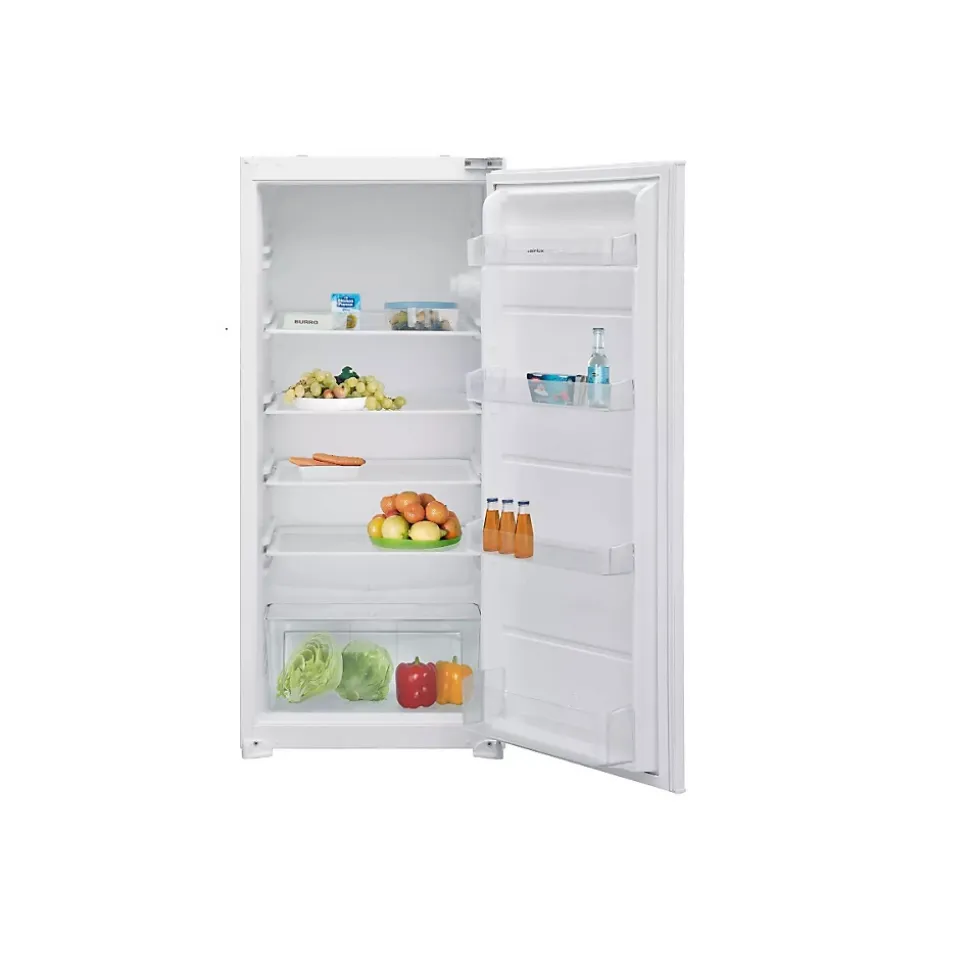Réfrigérateur 1 porte intégrable à glissière 193l Airlux – Réfrigérateur 1 porte ARI200TU de la marque Airlux. Possédant un espace de stockage généreux, ce modèle toututile vous offre un espace modulable à votre convenance. Sa taille compacte le rend idéal pour les petites cuisines et les espaces restreints, vous permettant de conserver vos aliments frais de manière optimale.Ce réfrigérateur encastrable, d’une hauteur 122 cm, s’intégrera harmonieusement dans tout les types de cuisines, même les plus petites grâce à sa taille compacte.Vérifiez le contenu de votre réfrigérateur grâce à la technologie LED. Ce système d’éclairage économe en énergie vous offrira une excellente visibilité et un meilleur confort. – Type de produit : Réfrigérateur.Type de construction : Intégrable.Volume utile total : 193 L.Classe d’efficacité énergétique : E.Emissions de bruit acoustique dans l’air (dB(A)) : B.Niveau sonore : 35 dB(A).Consommation annuelle d’énergie : 100 kWh.Consommation d’énergie journalière (24h) : 0,27 kWh.Puissance électrique d’installation : 60 W.Classe climatique : N. Cet appareil est conçu pour être utilisé à une température ambiante comprise entre 16°C et 32°C.Eclairage intérieur : LED.Type de porte : Charnières à droite.Portes réversibles : Oui.Système de porte : Glissières.Compresseur : 1.Thermostat électronqiue : Oui.Réfrigérant R600A : 0,061 kg.Mode de dégivrage réfrigérateur : Automatique.Position du congélateur : Pas de congélateur.Type de froid du réfrigérateur : Statique.Réfrigérateur connecté : Non.Intensité : 0,26 A.Tension : 220 / 240 V.Fréquence : 50 Hz.Nombre porte : 1.Nombre de clayettes : 5.Type de clayette : Verre de sécurité.Bac à légumes : 1.Réglage hiver : Non.Balconnets : 4 dont un porte bouteilles et un 1 support à œufs.Cordon d’alimentation : 190 cm, avec prise.Couleur :