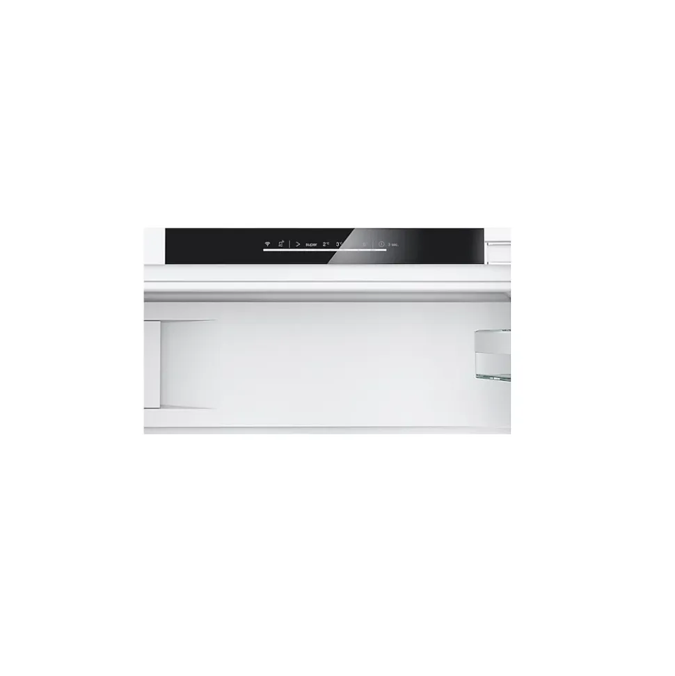 Réfrigérateur compact intégrable Siemens KU22LADD0 de 110 L avec froid statique, compartiment congélateur 4 étoiles de 17 L, alarme porte ouverte, régulation électronique de température avec affichage LED, connectivité Home Connect, classe énergétique D, niveau sonore faible de 35 dB, fonction super congélation et super réfrigération, livré sans habillage de porte, fixation pantographe, dimensions 82 x 59,8 x 54,8 cm (H x L x P).