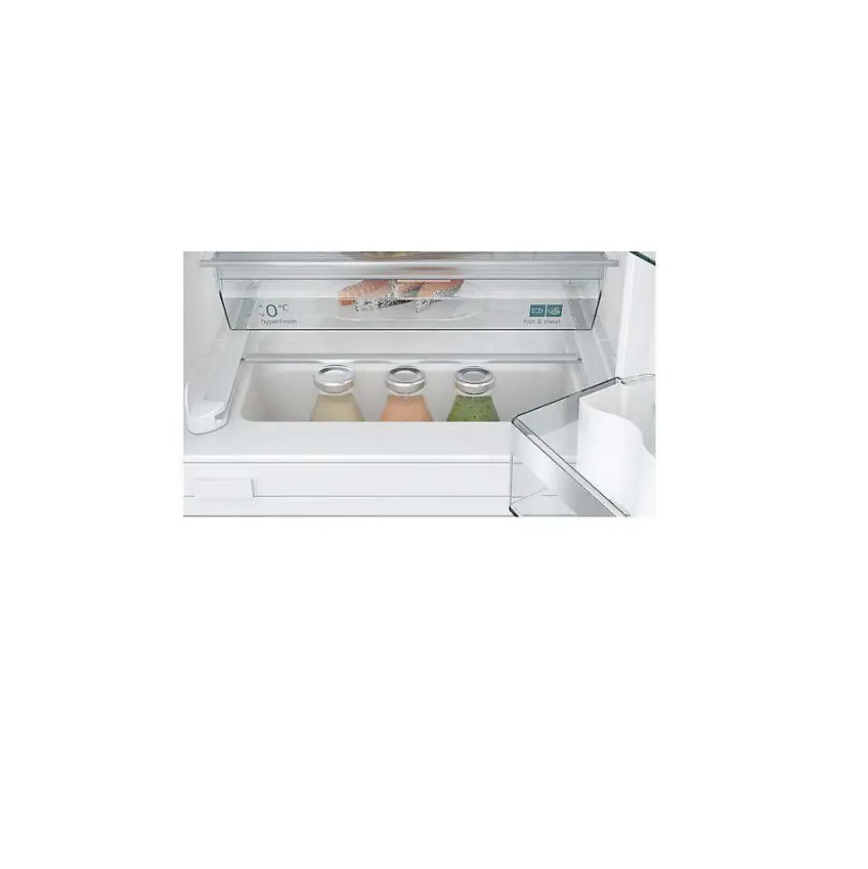 Réfrigérateur 1 porte intégrable à pantographe 110l Siemens – Réfrigérateur compact KU22LADD0 de Siemens encastrable avec compartiment congélateur 4 étoiles pour une fraîcheur permanente : zone climatisée, accès facile et alarme de porte. La touche Super-Réfrigération abaisse la température pendant une période définie afin de rafraîchir rapidement les aliments que vous rangez dans votre réfrigérateur. – Type de produit : Réfrigérateur intégrable.Design : Encastrable.Classe d’efficacité énergétique : D.Consommation énergétique annuelle moyenne : 119 kWh / an.Volume total : 110 l.Volume utile partie congélation : 17 l.Volume utile partie réfrigération : 93 l.Niveau sonore : 35 dB(A) re 1 pW.Classe de niveau sonore : B.Classe climatique : SN-T.REFRIGERATEUR.Super-réfrigération avec arrêt automatiqueEclairage LED dans le réfrigérateur.Support à bouteilles.3 balconnets.Support à bouteilles dans balconnet XXL.Système de conservation.1 freshBox.CONGELATEUR.Super-congélation avec arrêt automatique.1 compartiment congélateur intérieur.Pouvoir de congélation : 3 kg en 24h.Compartiment adapté pizzas.Autonomie en cas de coupure électrique : 9 h.Alarme visuelle et sonore de porte ouverte.Porte habillable : livré sans façade.Accessoires inclus : 1 x casier à oeufs , 1 x bac à glaçons.Intensité : 10 A.Fixation de porte à pantographe.Charnière de porte : Gauche réversible.Tension : 220-240 V.Fréquence : 50 Hz.Longueur du cordon électrique : 230.0 cm.Nombre de compresseurs : 1.Nombre de circuit de froid : 1.Nombre de clayettes réglables dans le réfrigérateur : 1.Clayettes spéciales bouteille : Oui.Encastrement H x L x P : 82 cm x 60 cm x 55 cm.Dimensions (H x L x P) : 82 x 59.8 x 54.8 cm.Poids net : 36.9 kg.
