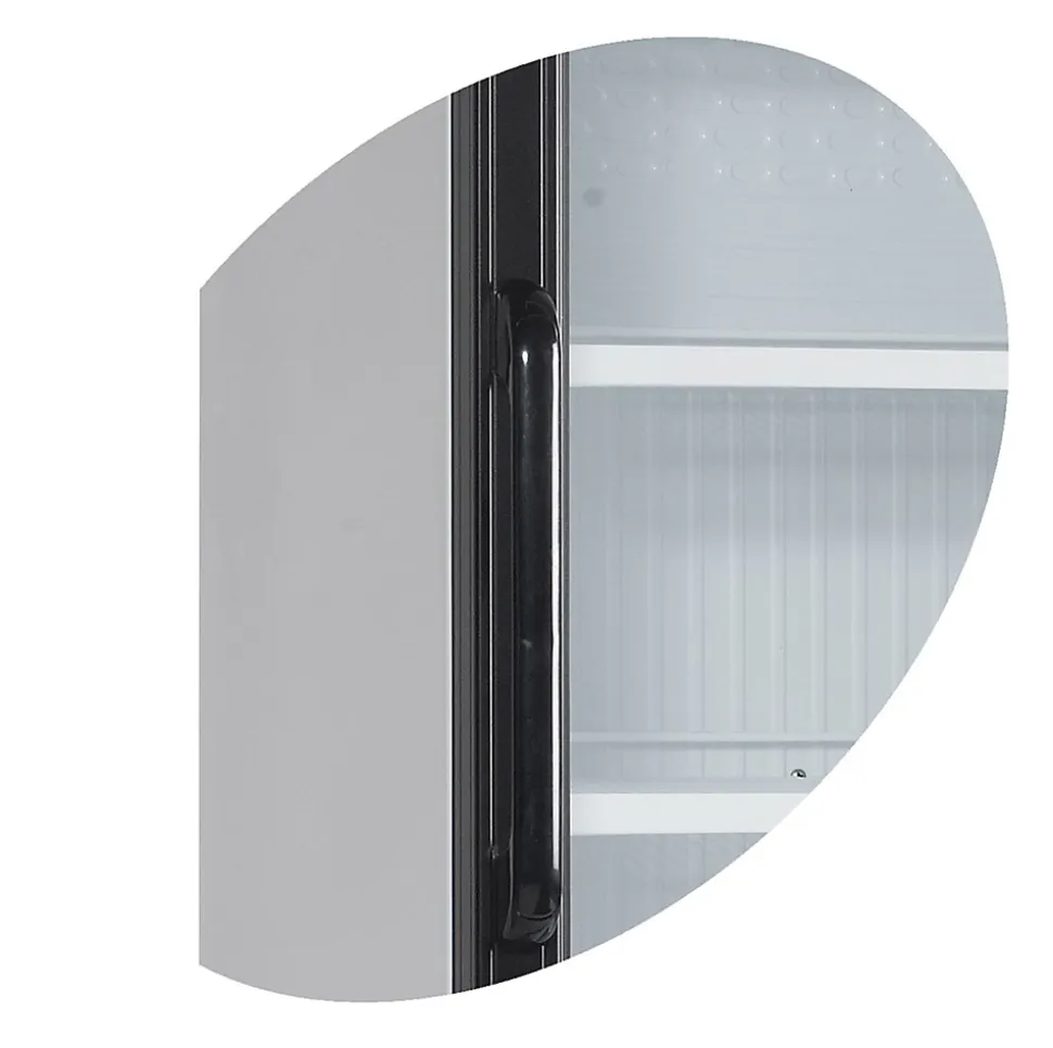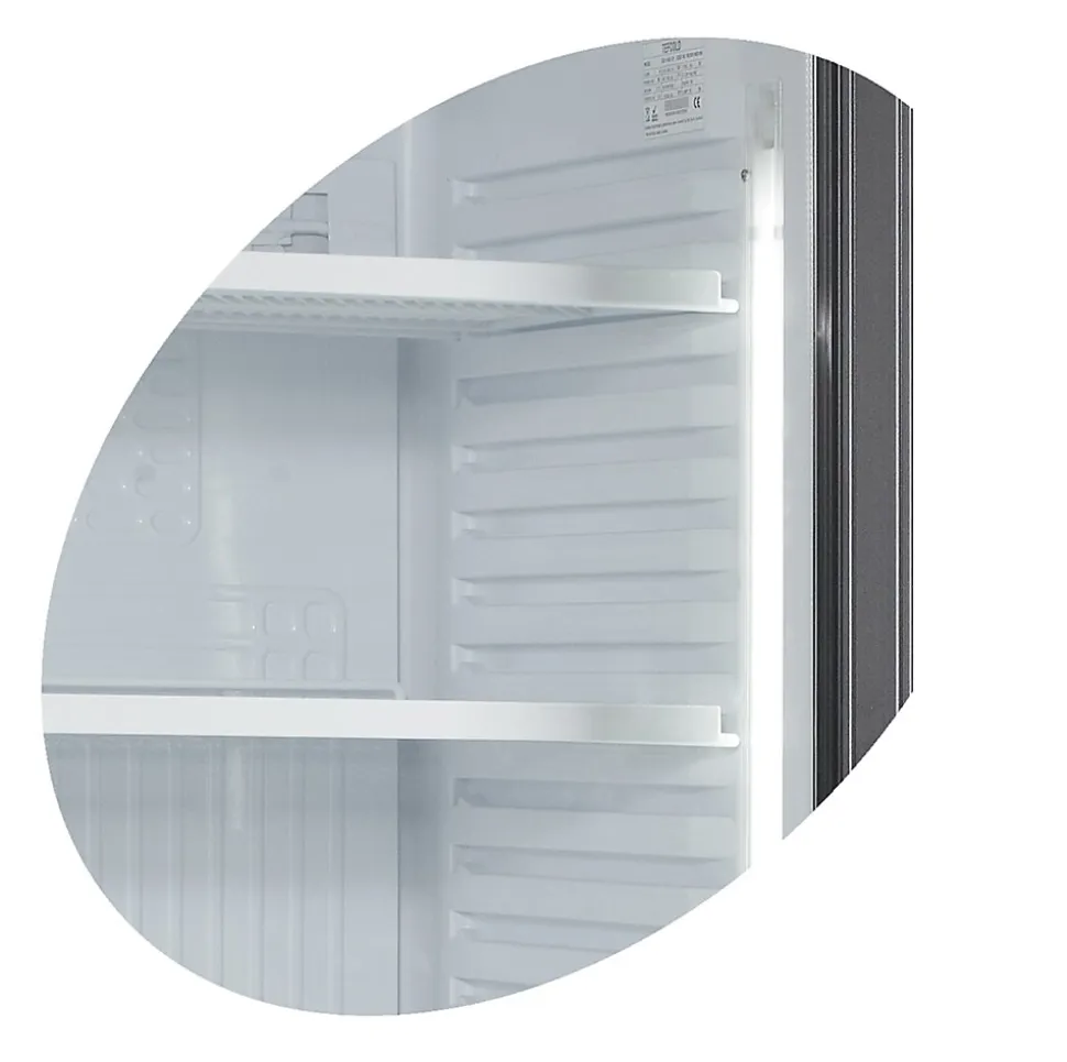 Réfrigérateur à boisson 6 clayettes Mesures et contenu : Canettes 330 ml : 720 pcesCanettes 500 ml : 486 pcesBouteilles 330 ml : 360 pcesBouteilles 500 ml PET : 360 pcesPlate de température : 2 à 10 °CClasse climatique : 4Poids brut / net : 107 / 102 kgVolume brut / net : 438 / 374 lDesign et matériaux : Nombre et type de porte : 1 porte vitrée à charnièresType de caisson : Profil en DPorte réversible : OuiCaisson lumineux : LED blanche froideVitrage de sécurité : OuiNombre et type de tablettes : 6 clayettes blanchesCouleur de tablette : BlancDimensions des tablettes : 574 x 405 mmPieds : 2 pieds ajustablesRoulettes : 2 roulettesFinition extérieure : BlancFinition intérieure : ABSÉclairage intérieur : LEDSerrure : OuiFroid et fonctions : <ul style= »list