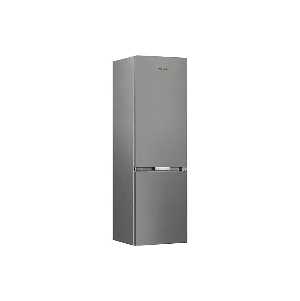 Réfrigérateur combiné Whirlpool WHK25404XP5E 355 L (249 L réfrigérateur + 106 L congélateur) en inox ; Dual No Frost (deux circuits) pour éviter le givre et le mélange d’odeurs ; ProFresh pour régulation d’humidité ; froid ventilé, dégivrage automatique ; 4 clayettes en verre (3 réglables), 2 bacs à légumes, 4 balconnets ajustables ; congélateur 4* avec 3 tiroirs, congélation 6 kg/24 h et autonomie 11 h ; thermostat électronique interne, éclairage intérieur, alarme porte ouverte, poignées intégrées, portes réversibles, pieds avant réglables ; consommation 205 kWh/an (classe D), niveau sonore 35 dB.
