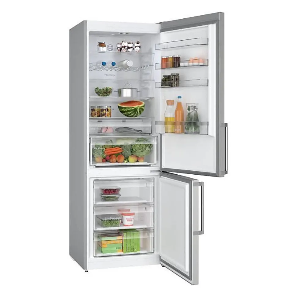 Réfrigérateur combiné 70cm 440l nofrost inox Bosch – Le réfrigérateur combiné Série 4 Bosch KGN497ICT No Frost avec VitaFresh et une capacité XXL : Conserve plus longtemps la fraîcheur de vos aliments frais. VitaFresh XXL : des tiroirs extra-larges offrant les conditions idéales pour conserver vos aliments plus longtemps. NoFrost : le dégivrage du réfrigérateur et du congélateur, c’est terminé. Paroi arrière luisante avec MultiAirflow : fait circuler uniformément de l’air frais pour maintenir des températures constantes. PerfectFit : installer votre réfrigérateur directement collé à un mur ou un autre appareil n’est plus un problème. Super-congélation automatique : l’appareil détecte automatiquement l’augmentation de température lorsque vous introduisez de nouveaux aliments à l’intérieur. – Type de produit : Réfrigérateur combiné.Type de pose : Pose libre.Volume utile total (en litres) : 440.Capacité congélateur (en L) : 129.Capacité réfrigérateur (en L) : 311.Type de froid réfrigérateur : Super réfrigération.Type de froid congélateur : No Frost.Dégivrage du réfrigérateur : Dégivrage automatique.Dégivrage du congélateur : Dégivrage automatique.Technologie de froid (dénomination commerciale) : Froid ventilé.Classe énergétique (2021) : C.Consommation énergie annuel (kWh/an) (2021) : 178.Classe climatique : SN-T.Autonomie en cas de coupure (en h) : 18.Pouvoir de congélation (kg/24h) : 11.Perception sonore (en dB) (2021) : 35.Classe de perception sonore (2021) : B.Type de Clayette : Verre.Nombre de clayettes : 5.Eclairage LED : Oui.Distributeur d’eau fraîche : Non.Fabrique de glaçons : Non, bac à glaçons manuel.Raccordement alimentation d’eau : Pas d’arrivée d’eau.Bac avec régulateur d’humidité : Oui.Portes réversibles : Oui.Famille de Couleur : Inox.Gamme : Série 4.Réfrigérateur connecté : Non.Dimensions du produit (H x L x P