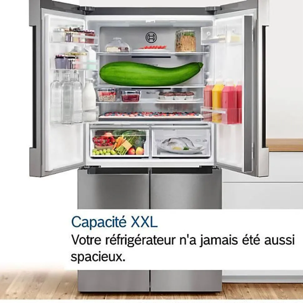 Optez pour le réfrigérateur combiné BOSCH SER4 KFN96AXEA et transformez votre façon de conserver vos aliments. Avec une capacité totale de 605 litres, ce réfrigérateur multi-portes pose-libre offre un espace généreux pour toutes vos provisions. Sa technologie No Frost, sa classe énergétique E et sa consommation électrique de 333 kWh/an garantissent une efficacité énergétique et une performance de refroidissement exceptionnelles. Son design élégant en acier brossé noir anti-trace avec poignée intégrée et charnieres pantographes s’integre parfaitement dans toutes les cuisines. Ne manquez pas cette occasion de moderniser votre espace de vie avec le réfrigérateur BOSCH SER4 KFN96AXEA !