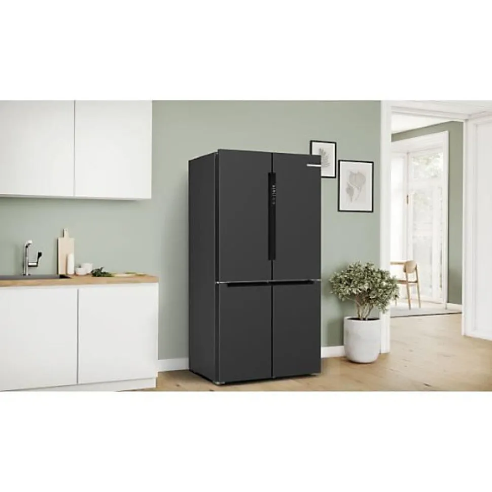 Réfrigérateur combiné Bosch 605 L Multiportes en acier brossé noir, Total No Frost, Home Connect WiFi, VitaFresh et LED pour grande capacité et conservation optimisée.