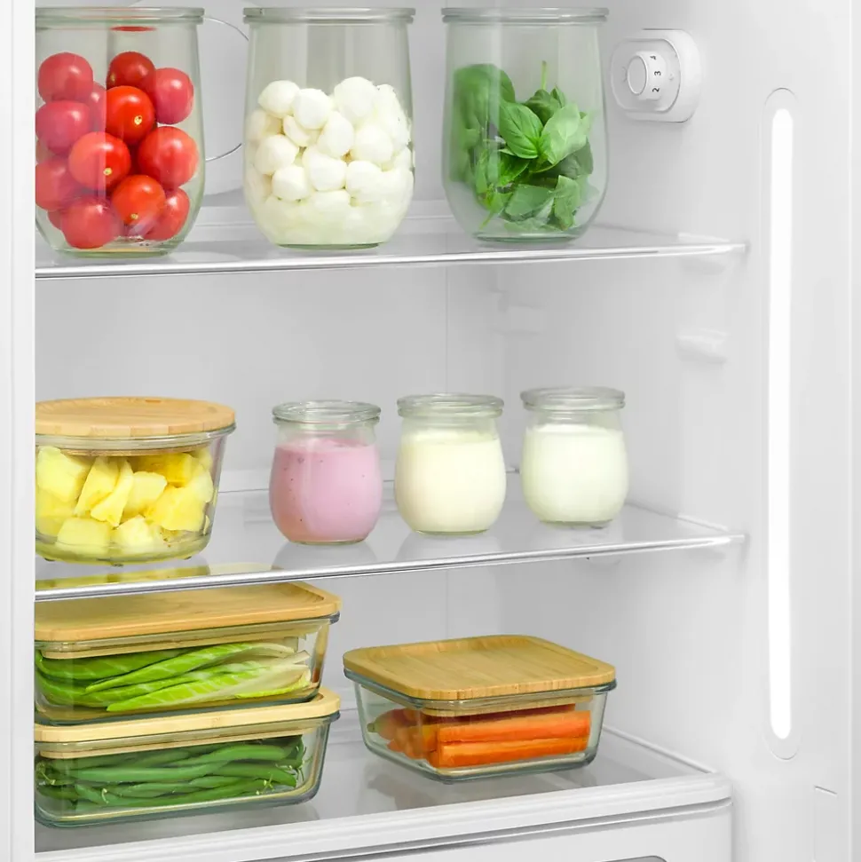 Le réfrigérateur au design iconique des Années 50 avec compartiment congélateur intégré, parfait pour ajouter du caractère à votre cuisine ou à votre salon sans sacrifier la performance de refroidissement ni le confort d’un intérieur pratique et fonctionnel.